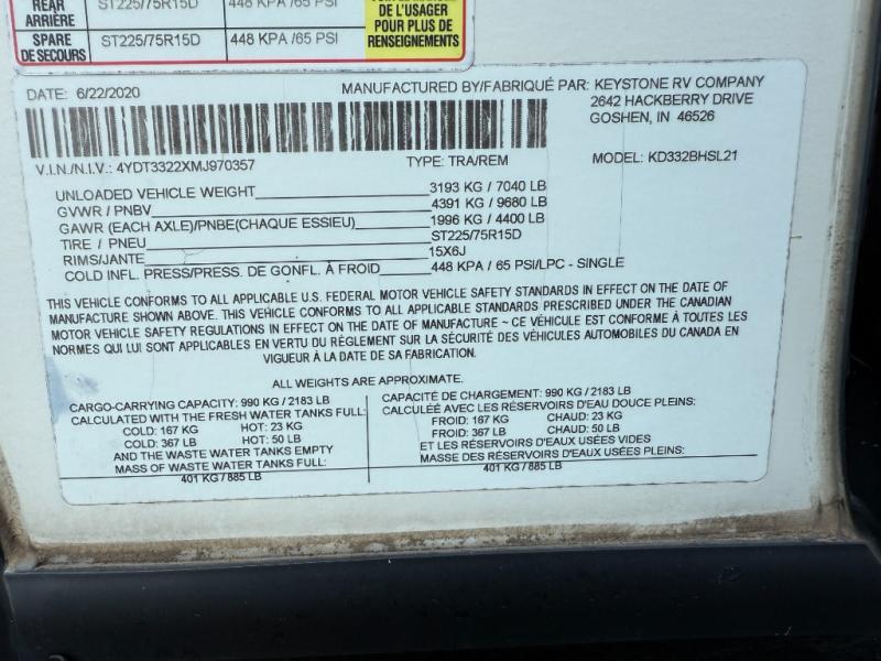 | VIN | 4YDT3322XMJ970357 |