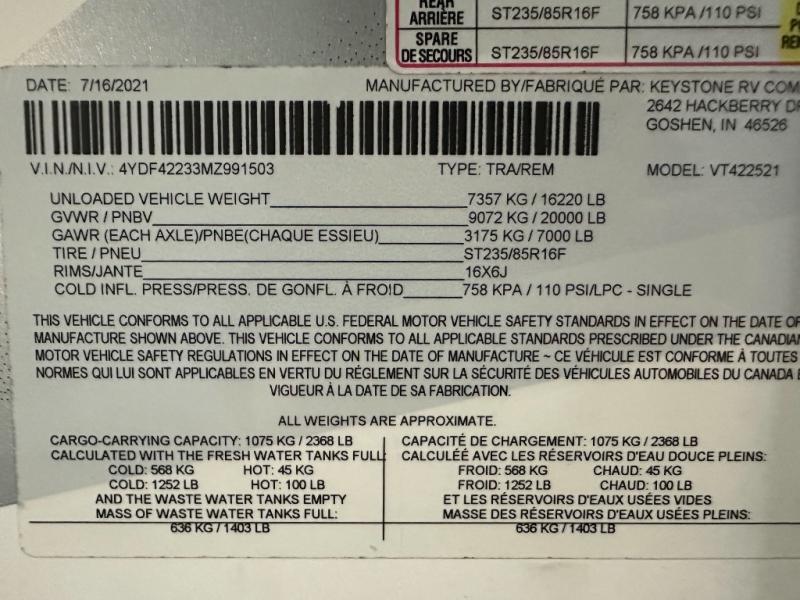 Used 2021 Dutchmen RV Voltage 4225 Toy Hauler Fifth Wheel