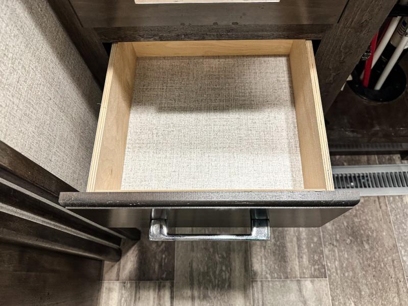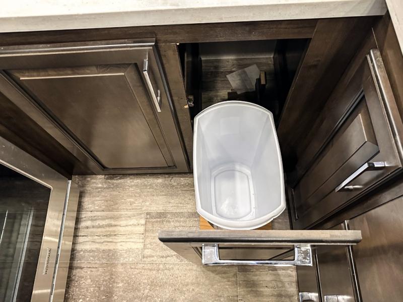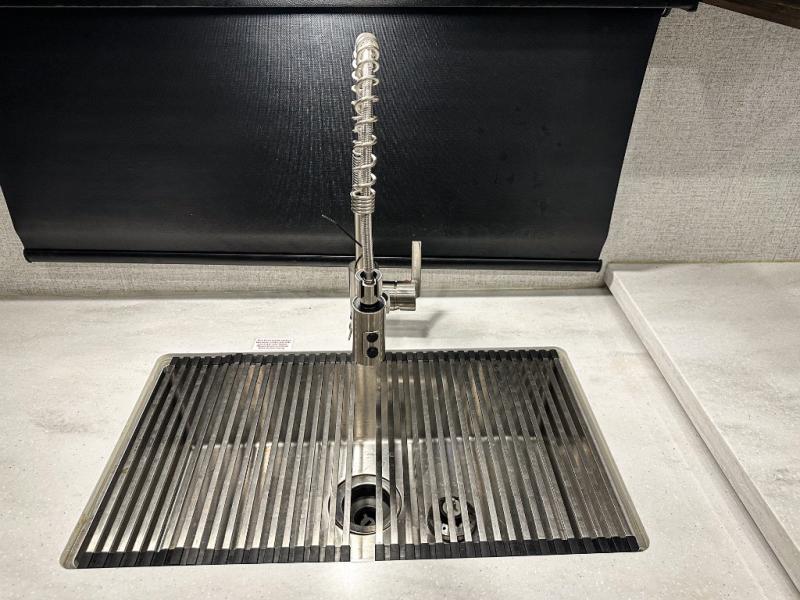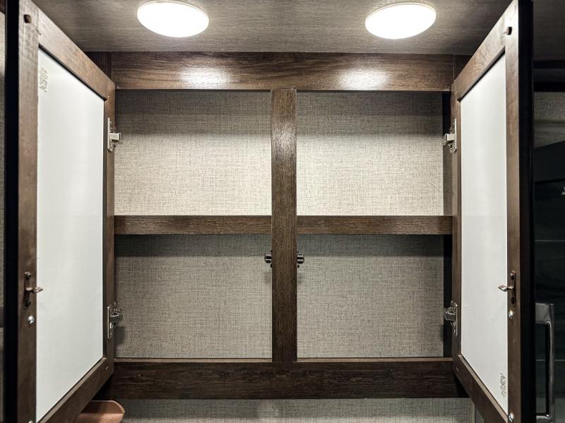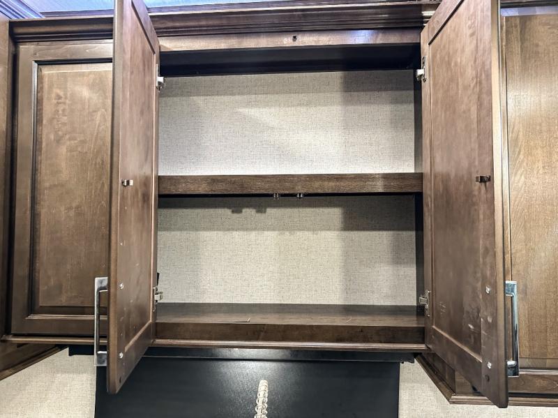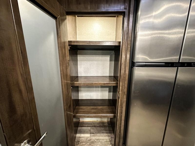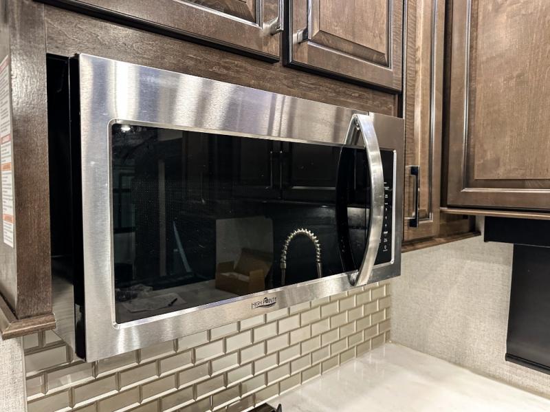 Your friends and family will be so impressed when they see this Voltage toy hauler! This unit has wonderful sleeping accommodations with a king-size bed up front in the master suite, a loft bed, a Happi-Jack power bunk above a set of opposing sofas, and two sofas in the main living area. On top of the great sleeping arrangements, you will also have a full and half bathroom so that everyone can stay clean, and the kitchen amenities are going to make it easier than ever to prepare meals while away from home. You might not even notice that you're away from your usual kitchen since this unit has an 18-cubic foot refrigerator, an oversized convection microwave, a stainless steel farmer's sink, and a Furrion three-burner range with 21" oven. There is also a pantry so that you can keep your snacks readily available.