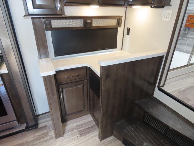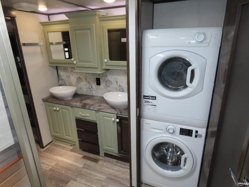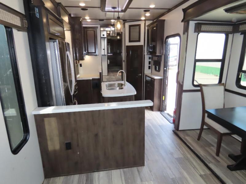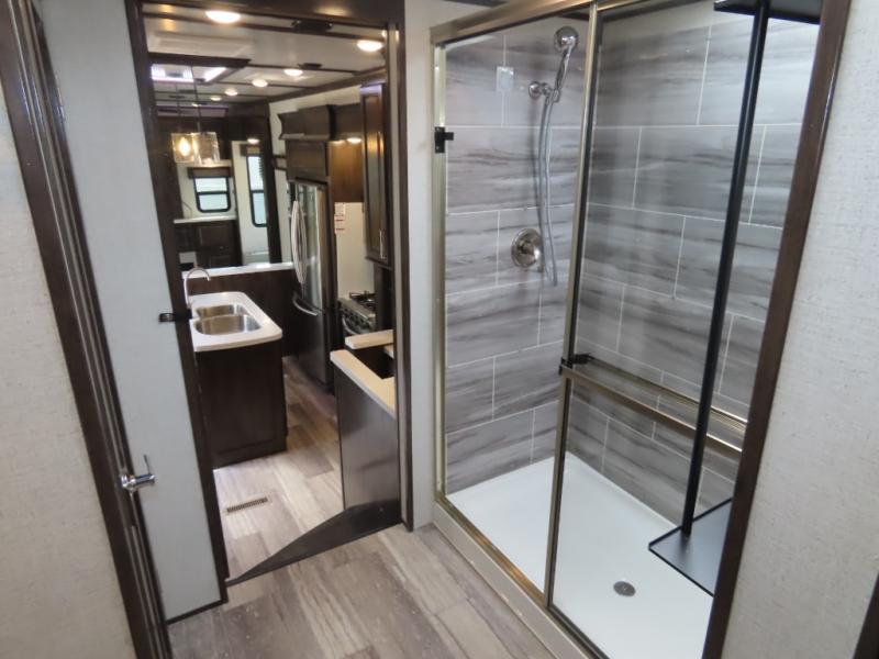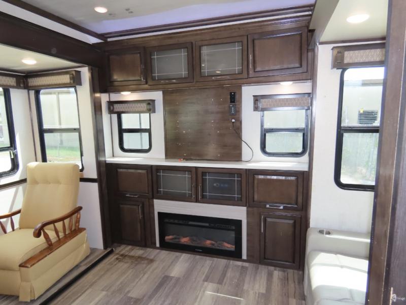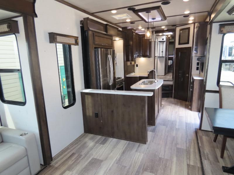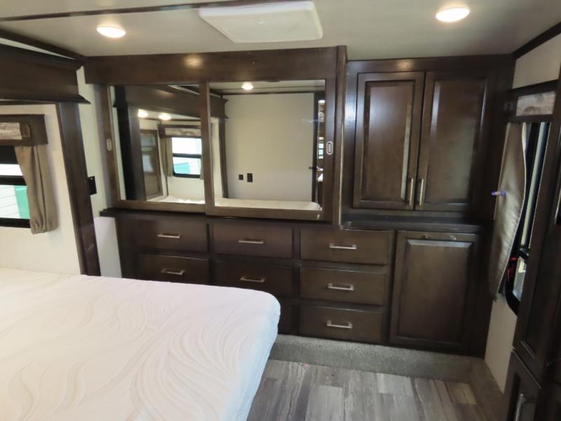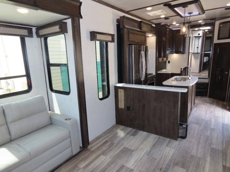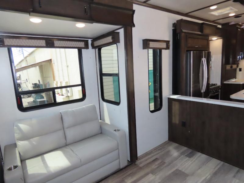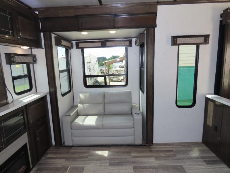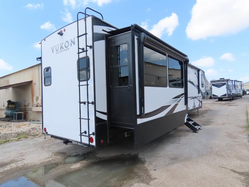 Discover residential camping at its finest with the Dutchmen Yukon fifth wheels! The entire Yukon is spectacular and accommodating and will make every journey feel like home. The upgraded RotaFlex pin box will make towing on tougher roads smooth as ever, and you'll enjoy hassle-free set up with the 6-point auto-leveling. Each Yukon features the All Weather Package that includes additional insulation with 12V tank pads, and the 100" wide body construction will provide your family will more space to walk around, relax, and store your belongings. Inside, you will enjoy the panoramic windows for beautiful outdoor views, the electric powered theater seating for your comfort, and the custom wardrobe with a large closet and drawers for all your items. The industry-leading 7' slide out ceiling height will give you plenty of headroom to stretch out in luxury, and the chef of your family will appreciate the largest counterspace in the industry. Your home away from home is a Yukon fifth wheel by Dutchmen. Choose your favorite layout today!