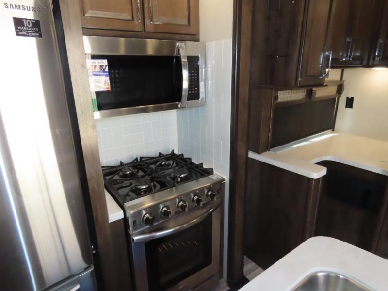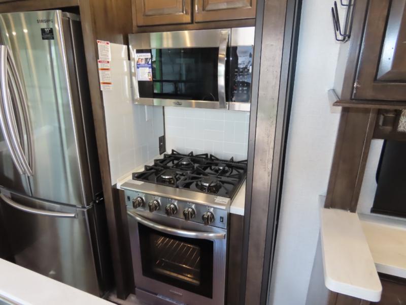 There is so much luxury in this unit with the king-size bed and fireplace in the private master suite up front, and since the bedroom has a private entrance into the dual-entry bathroom with two sinks at the vanity, you will actually look forward to getting ready in the morning. The kitchen is filled with extremely helpful and stylish amenities, like the high-rise faucet in the stainless steel double-bowl sink, the Samsung French door refrigerator, the four-burner cooktop, and the oversized convection microwave. Plus, after all of your day's tiresome adventures, spend the evening relaxing in front of the second fireplace in the rear living room on one of the electric residential recliner sofas.