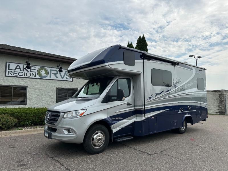 You will find that each one of these Dynamax isata 3 Class C diesel motorhomes are different by design with dark-tinted frameless windows, an aerodynamic fiberglass front cap with cab-over cabinets, and full body paint packages with a front-end diamond shield. Each model is built with a Mercedes-Benz® Sprinter chassis, the Truma® Aqua Go Comfort™ on-demand water heater, and MaxxAir® power vents so you know you're getting an efficient motorhome. You can be sure to have a peace of mind while you travel thanks to the aluminum truss structured roof with a crowned, one-piece fiberglass skin. Start doing things different with one of these Dynamax isata 3 Class C diesel motorhomes today!