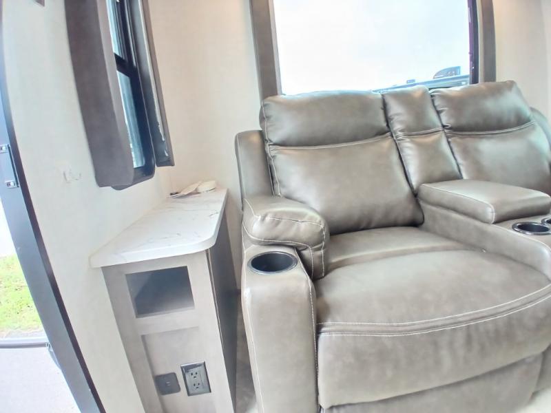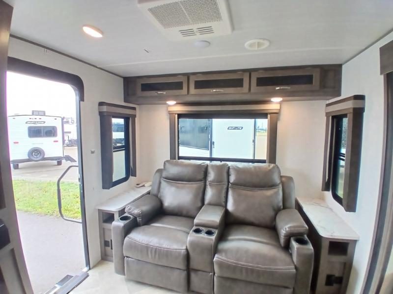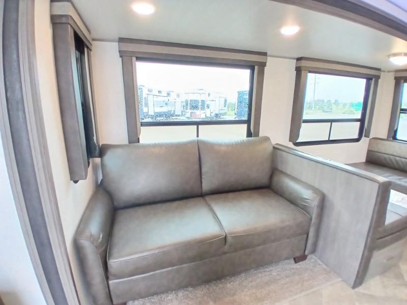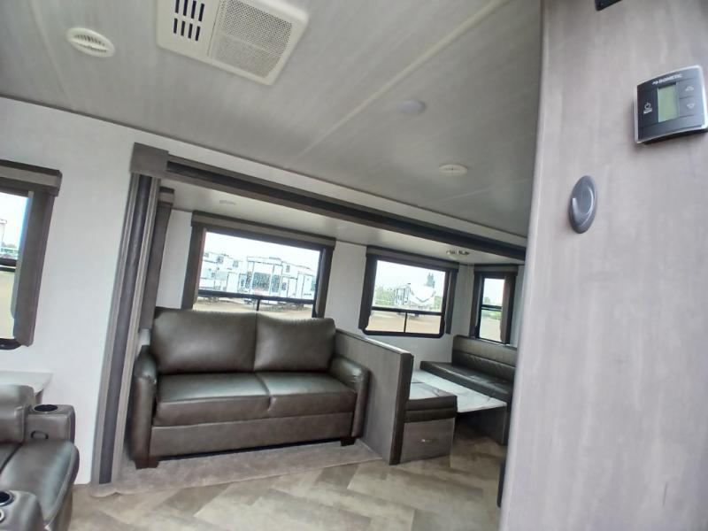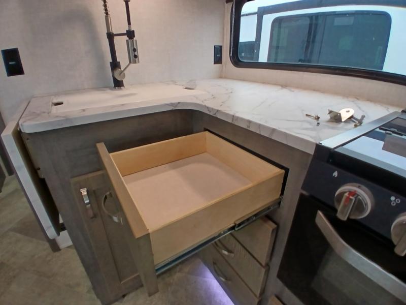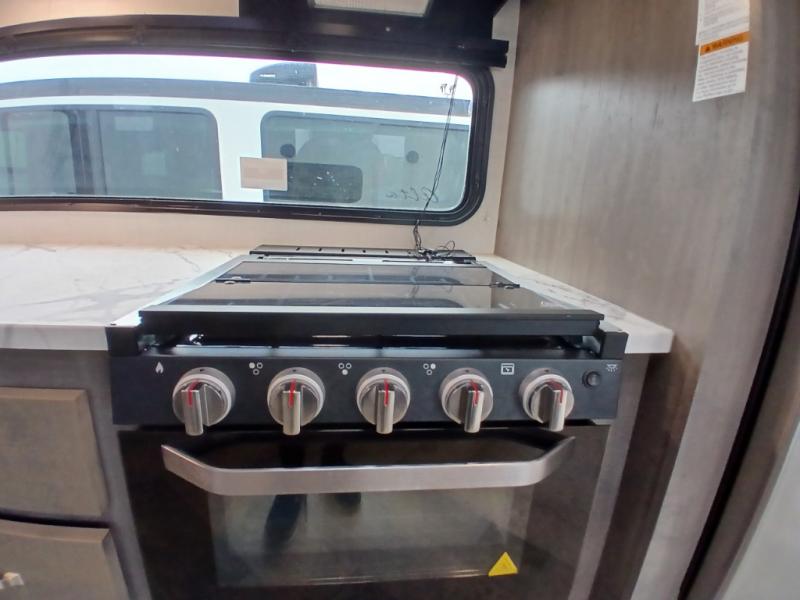 Eat, sleep, play, and relax all in this Alta travel trailer that features a rear living area and a front private bedroom. Once you've set up camp and had a look around the campground, prepare lunch on the three-burner cooktop or use the convenient microwave oven. You and your spouse can relax on the theater seats, and the kids can play a game at the booth dinette within the large slide out. There is also a tri-fold sofa that provides more seating space and can be converted to additional sleeping space as well. And, the walk-through bath leads to the front private bedroom for convenience where you'll enjoy a king bed, storage for your clothing and things, and your own exterior entry door!