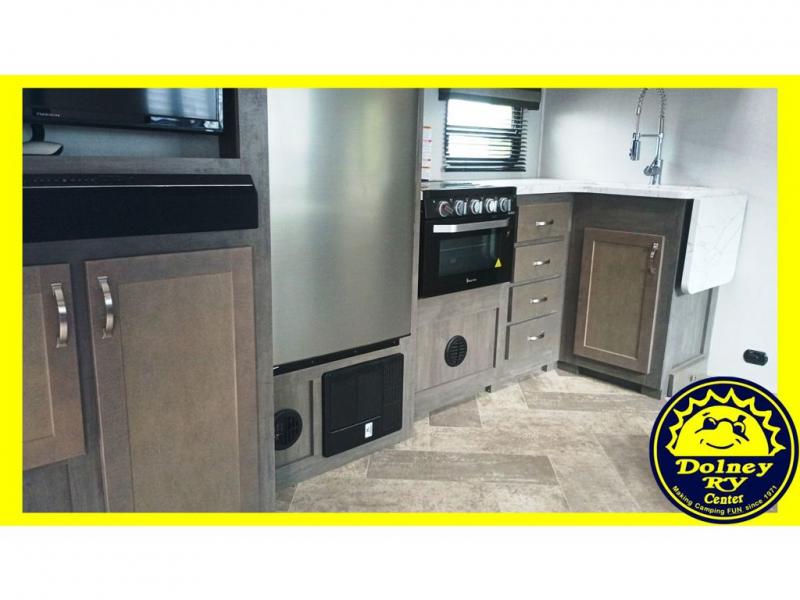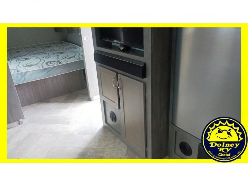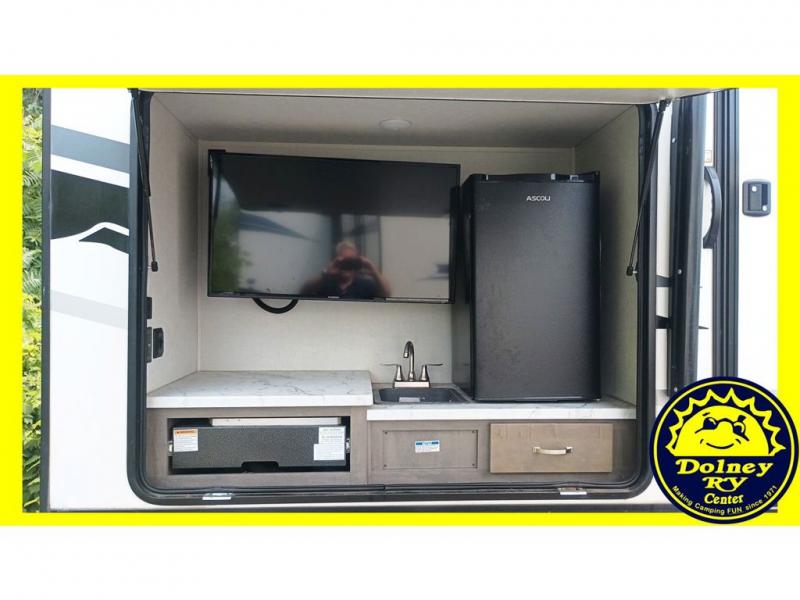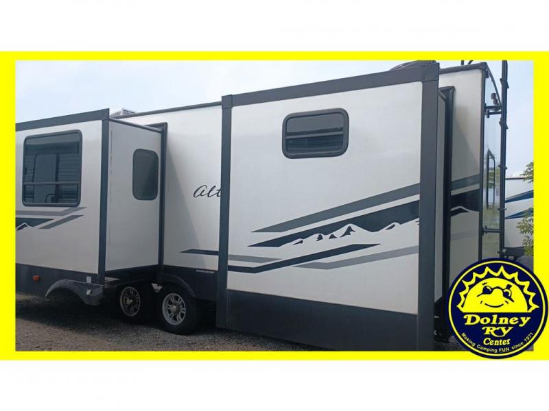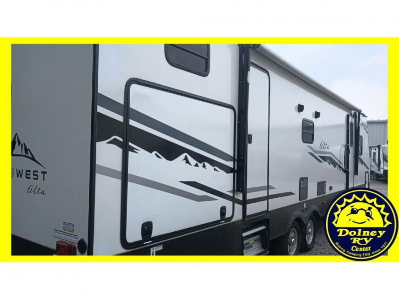 If you've been looking for a trailer with ample space that allows you to invite the whole family along, look no further than this Alta travel trailer. Beginning with two entry doors with one entrance leading into the kitchen/living area and the other exterior entry leading into the bath for convenience. There is also a hallway with coat hooks just as you exit the bath where the kids can place their jackets and things. The rear bunkhouse will be great for all the kids, and since it includes a slide out, they'll have extra floor space to play indoors. The inside kitchen amenities will allow the cook to prepare and make any meal, plus the outside kitchen allows the outdoor chef to help with side dishes or fry chicken so grease doesn't go everywhere inside.