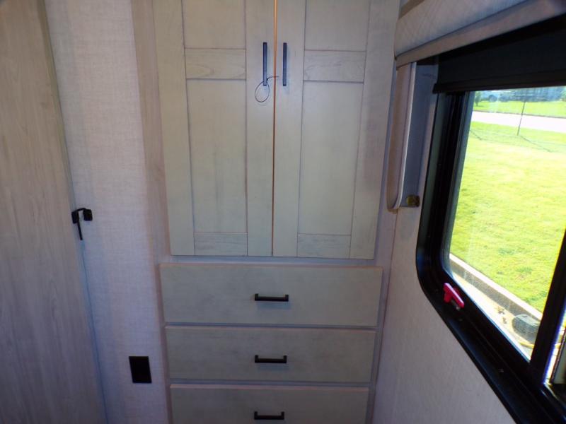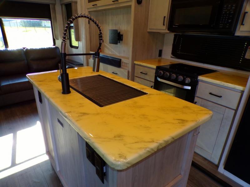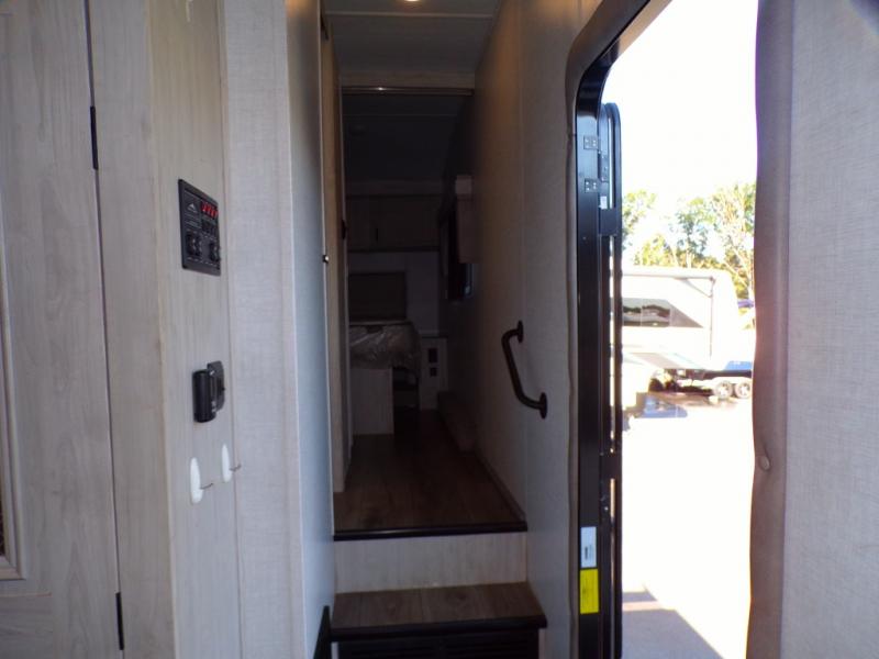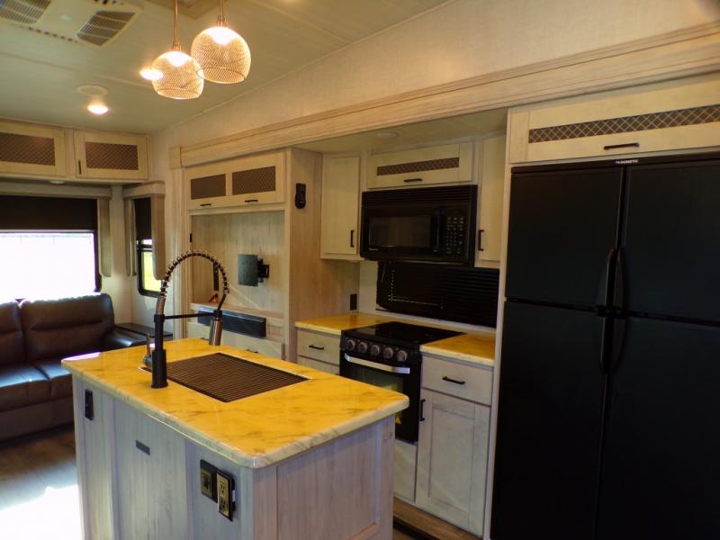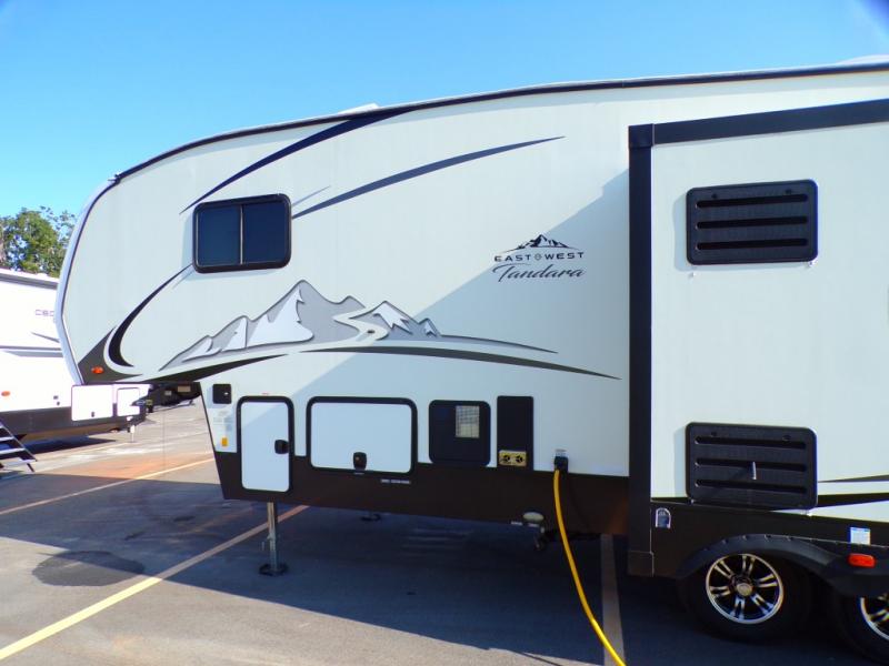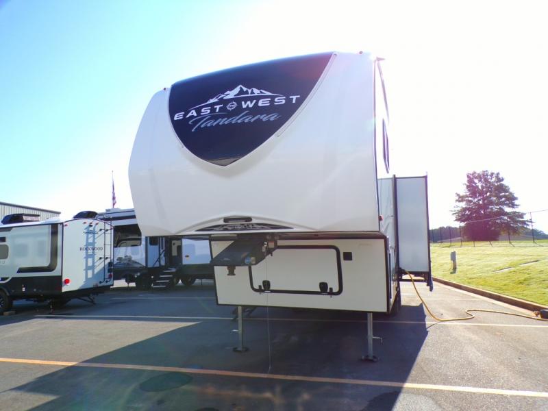 With any Tandara mid-profile fifth wheel by EAST TO WEST, you will experience comfort, luxury and loads of features others wish they had! Built with an aerodynamic fiberglass front cap with seamless high-visibility LED lights and a marine-grade 10" LED hitch light above the 2" rear towing and accessory hitch, MORRyde CRE 3000 suspension, and BAL automatic leveling system, your drive and your setup at the campsite will be enjoyable with all these upgrades and conveniences. The interior is something to boast about with solid-surface kitchen countertops, Artisan maple interior décor, a Furrion HDMI/AM/FM Bluetooth entertainment system with sound bar speakers, Slow Rise roller shades, and LED motion-sensor lights in the bathroom hallway and bedroom closets. The marine-grade woven PVC flooring in the flush-floor slide outs and the vinyl flooring in the main areas offer durability for years of use. There is so much more to enjoy, so take a look and choose your favorite Tandara!