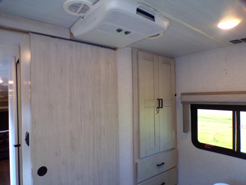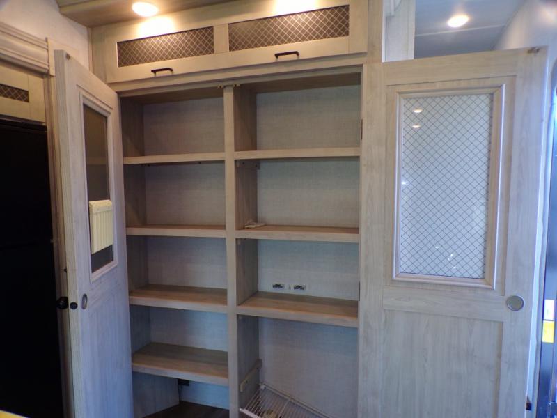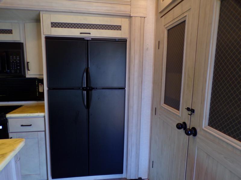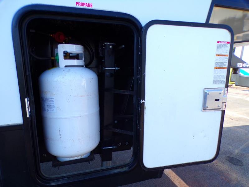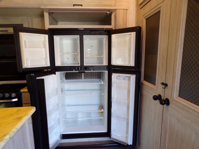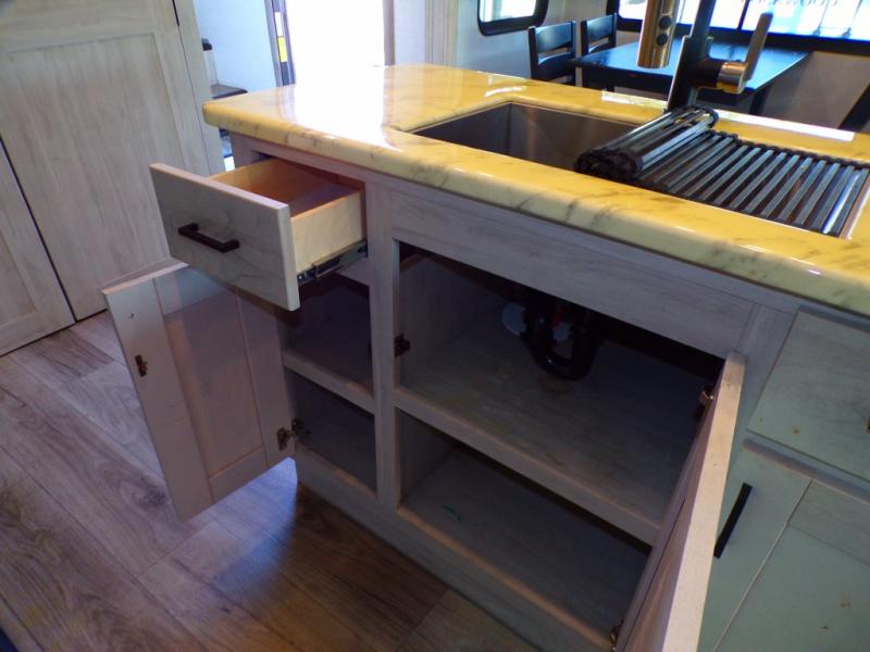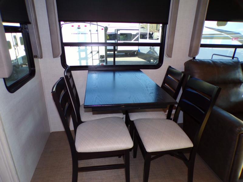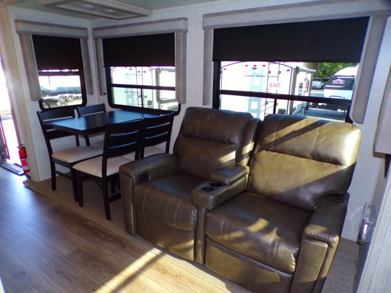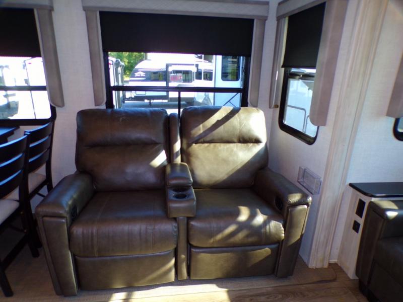 Get ready to find adventure when you take this Tandara camping or glamping! Inside, you can sleep on your own walk-around king bed, get cleaned up in the full bathroom with a seamless fiberglass shower, and watch the 50" TV on a swing arm with a fireplace below for those chilly nights. The residential microwave and refrigerator allow you to cook like at home, and the double-door pantry and coat closet gives you extra room for all the snacks. The kitchen island provides a deep-seated stainless steel sink with roll-up drying rack and residential high-rise faucet with pull-down sprayer making cleaning the dishes super easy. You can relax on the hide-a-bed sofa or theater seating and dine at the wall-mounted free-standing table with four chairs. And don't forget about the two power awnings offering a nice living space outside protected from the elements.