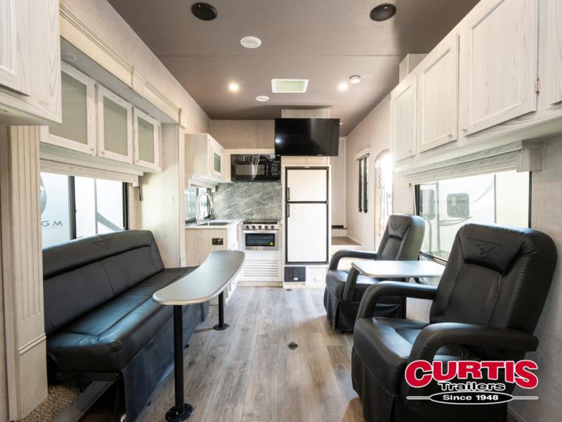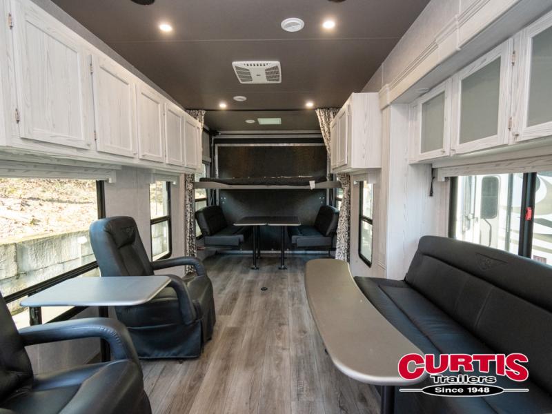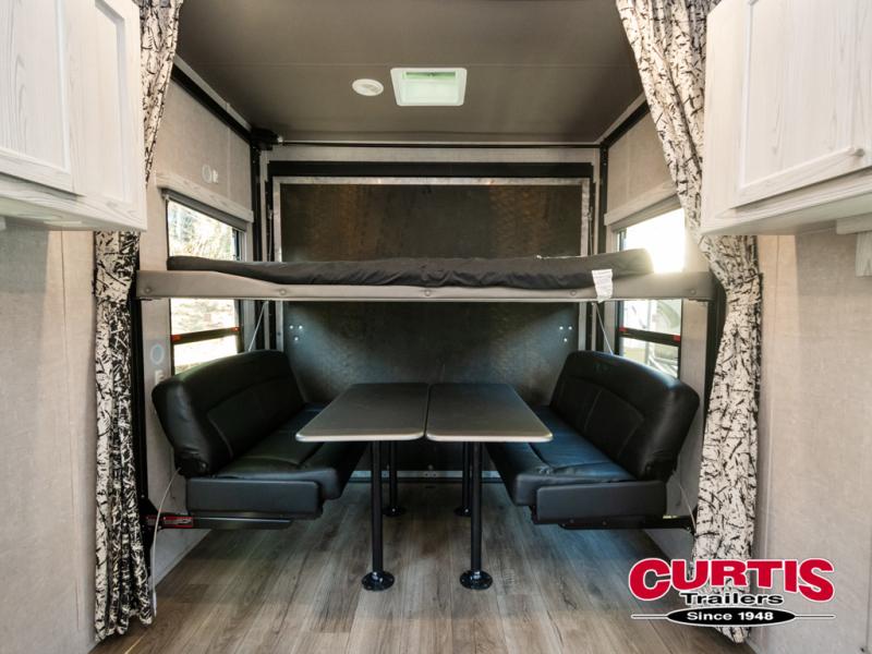 Keep your camping game strong with this Attitude Pro-Lite toy hauler! With an amazing 19' 11" garage, there is a huge amount of space for your favorite off-road toys. There is also lots of space for you and your traveling companions with the full kitchen, the complete bathroom, and the private bedroom. There is also a 40-gallon fuel station which will allow you to stay out in the woods all weekend without having to make a trip back into town for fuel. If you need a moment to catch your breath from all of that fun, you can sit back into one of the two lounge chairs.