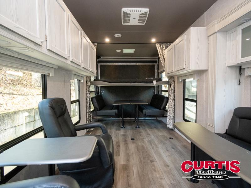 In every Eclipse Attitude Pro-Lite toy hauler, you will find a trusty companion that is always ready to hit the trails with you! The exterior consists of a powder-coated chassis and stabilizer jacks. Plus, there is an exterior shower and an HD digital antenna with park cable hookup. You can travel at ease because of the heavy-duty axles with Zerk fittings and self-adjusting brakes, along with the Mod black steel wheels. Inside, there is Top Stitch deluxe furniture, a large double-door refrigerator, and dimmable LED lighting for you to see clearly whether day or night. There is even an AM/FM/BT/DVD stereo with exterior speakers for you to crank up the tunes! So come see which Eclipse Attitude Pro-Lite toy hauler best suits you and get on the road today!