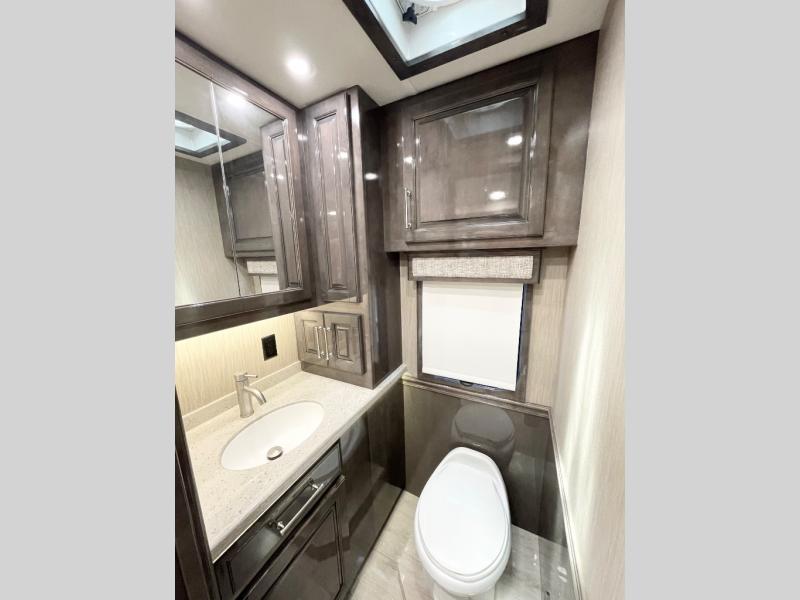 Each Aspire Class A diesel motorhome by Entegra Coach is constructed with X-Bridge bracing welded into the chassis frame, insulated front and rear caps with a steel-reinforced front cap and windshield frame, exterior walls with Aluma-Tru welded tubular aluminum studs, and individual shut off values in the centralized water distribution point in the wet bay. You will find technology throughout such as the Xlite 360-degree camera system, the Xlite XSG3 infotainment system, and the Valid 12.3" digital dash with quad-core graphics processor and on-board diagnostics, plus much more! Aspire to having the perfect road companion, own a luxury diesel Aspire today!