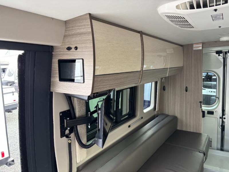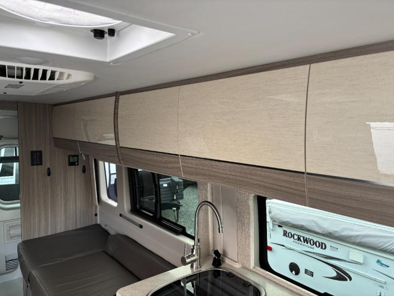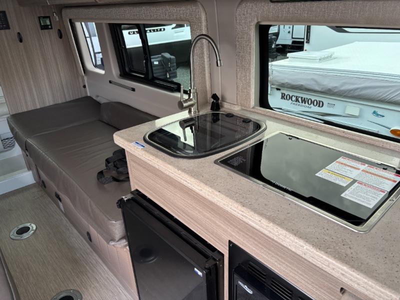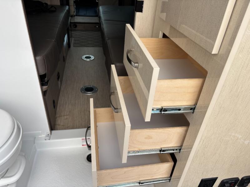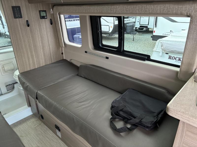 You will want to get away as soon as you can get this Ethos Class B gas motorhome fueled up and packed up! Go anywhere and see everything with all of your essentials neatly tucked away in this 20' 11" coach. The kitchen has what you need and want with its two-burner cooktop, convection microwave, solid-surface countertop, stainless steel sink with glass cover, and pop-up 110V/USB outlet, and the cab area has been decked out with a 7" Pioneer infotainment center and ParkSense rear park assist system so that you can just enjoy the ride.
