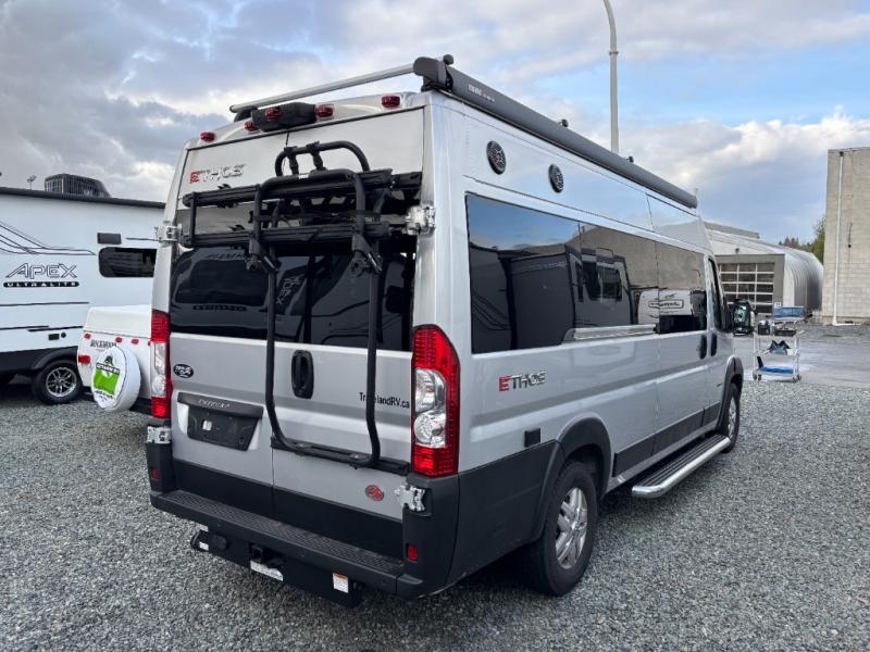 Entegra Coach now offers their legendary luxury in a Class B gas motorhome! Powered by a 3.6L V6 24V VVT engine and a RAM® ProMaster 3500 window van chassis, the Ethos is a popular van-style coach that can be taken on many adventures, and the E-Z Drive system ensures that the trip will be smooth. You will find helpful technology all throughout the Ethos with the Onan 2,800W generator, water filtration system, 190W roof-mounted GoPower solar panel, and Winegard® Connect 2.0 4G WIFI. The Ethos also comes with practical features that will simply make your life easier, like the Thule bike and roof rack, the outside shower, the swivel cab seats, and the backup camera.
