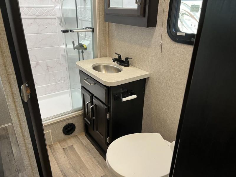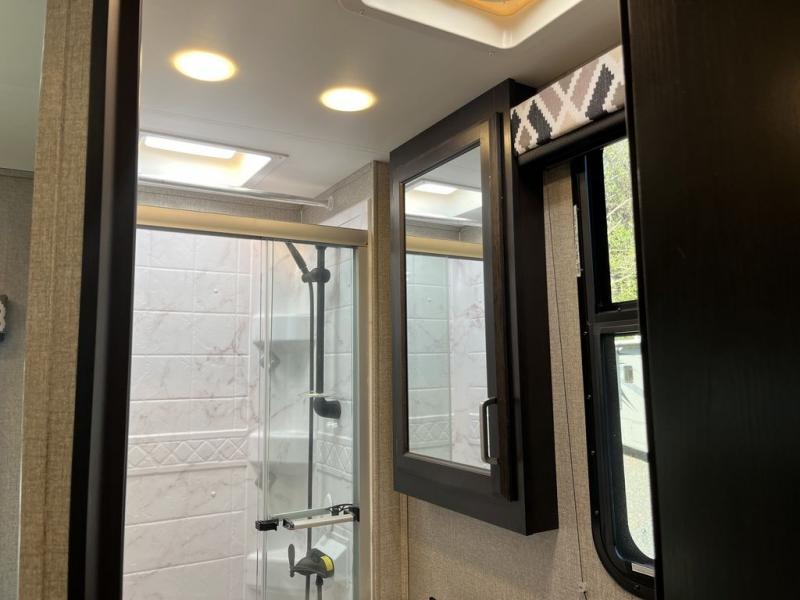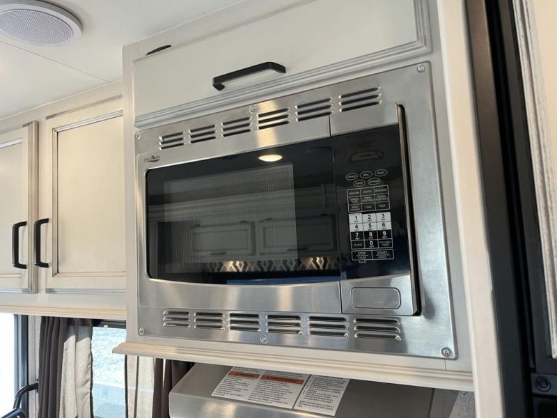 Set your sights on this spacious motorhome that can sleep six people each night. The swivel captain's seats provide more seating space once parked, and the booth dinette will be the perfect place to enjoy a game of cards together. There is also a sofa to relax in complete comfort. Whip up your best meal on the Furrion all-in-one cooktop and oven, or use the convection microwave. The slide out queen bed and full bath is neatly tucked away behind the privacy curtain so you can enjoy your own space at night.