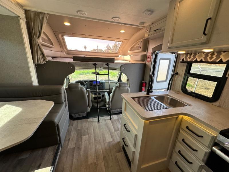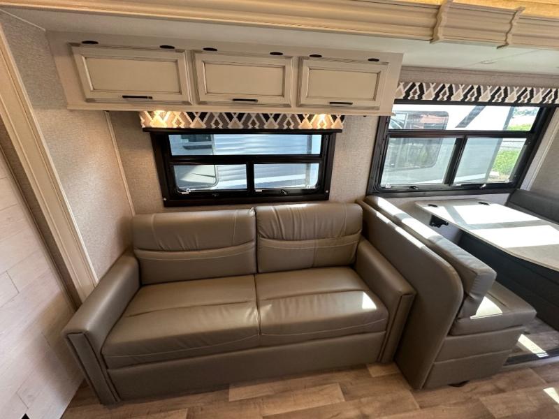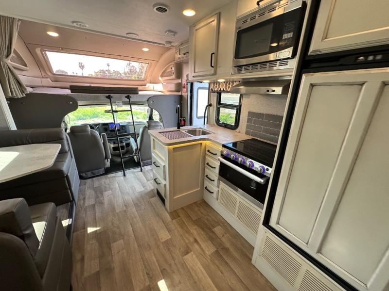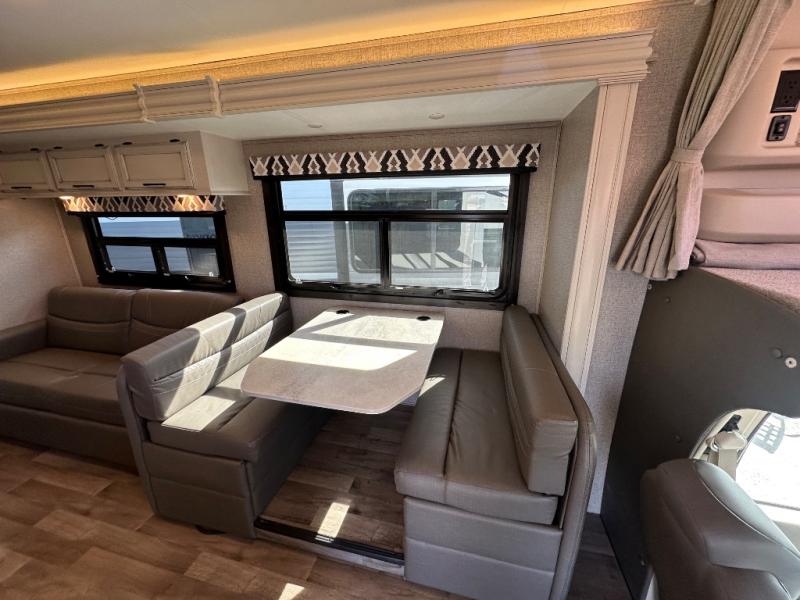With any Odyssey Class C gas motorhome you will enjoy convenient and at-home features for a one-of-a-kind traveling experience. The kitchen includes decorative backsplash, LED-lit pressed countertops, plus a pop-up charging station with 110v outlets and USB plugs for your tablet or phone. You'll find an LED HDTV in the living area, as well as an interior command center to control your units functions with ease. Outside, the electric awning with LED lights and two high-output marine-grade exterior speakers will create an outdoor living space you are sure to love, and you can fill the dogs water bowl up with the outside shower. The Odyssey also features E-Z Drive, which includes a computer-balanced driveshaft, rubber isolation body mounts, Hellwig helper springs, plus more to provide a smooth ride across the country!