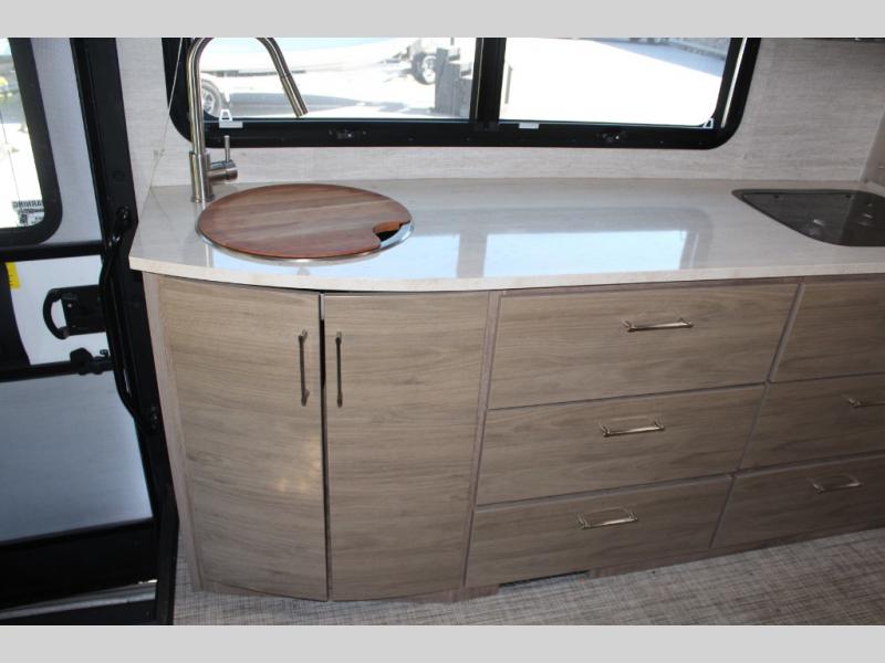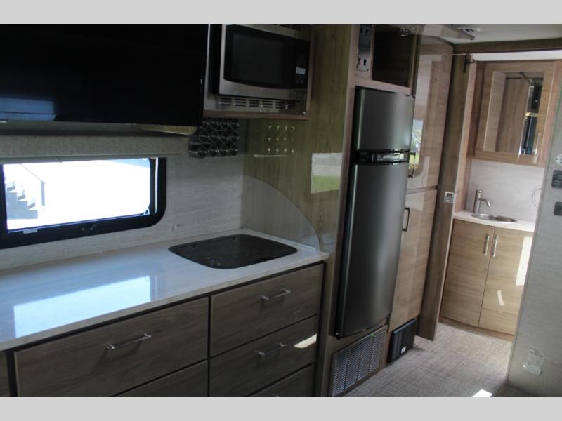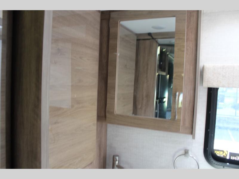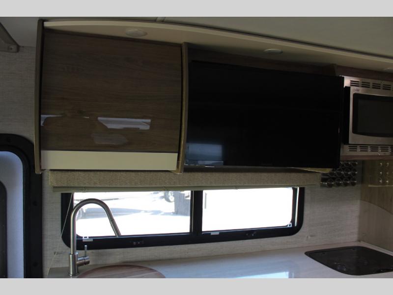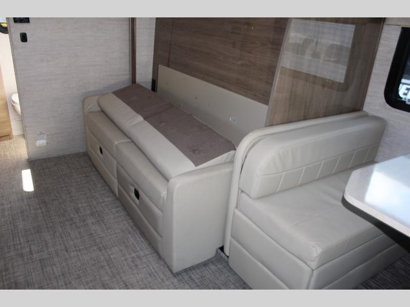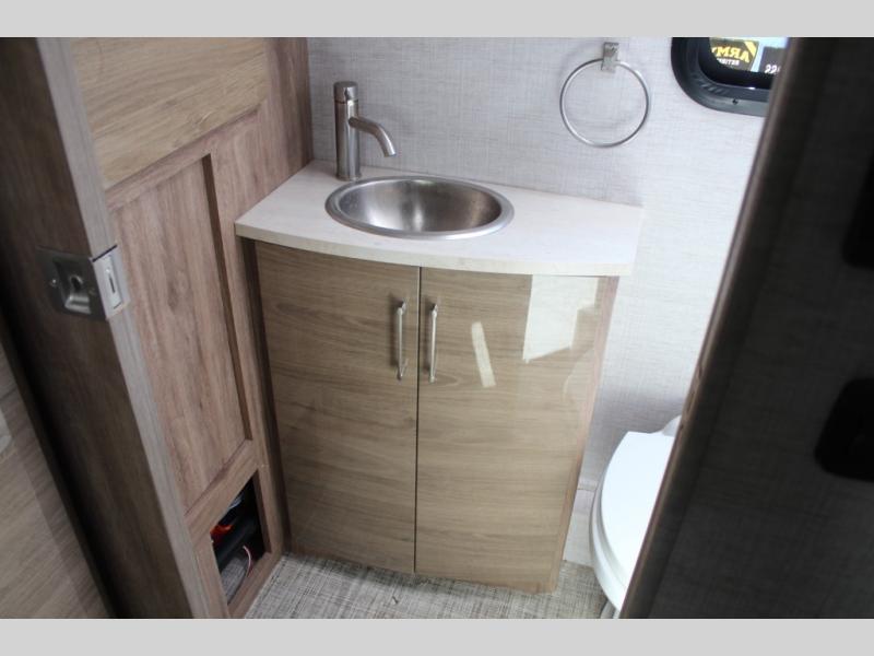 If you want more interior space and the choice of a sofa during the daytime and a Murphy queen bed at night, this coach makes sense. The versatile furniture gives you the best of both worlds, and the booth dinette offers a space to dine, play games and even sleep for your kiddo or guest. The cab-over bunk is another place the kiddos will love or you can choose the B+ front cap option if you like. The LED TV and Blu-Ray player offer inside entertainment, and the kitchen offers the cook a convection microwave and a drop-in cooktop to make meals. The pantry and fridge are next to each other making it easy to grab a drink and snack before heading outside to enjoy the great outdoors.