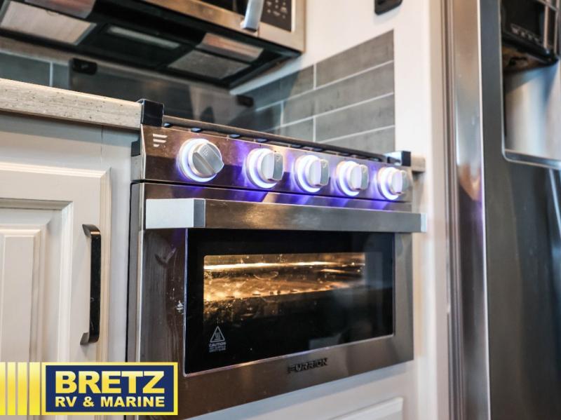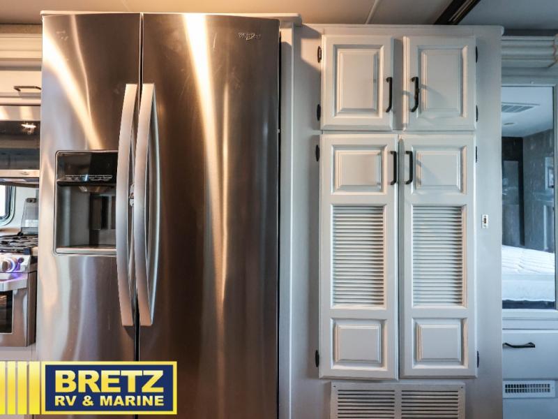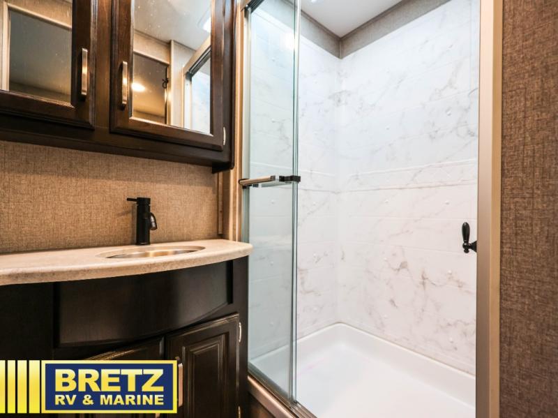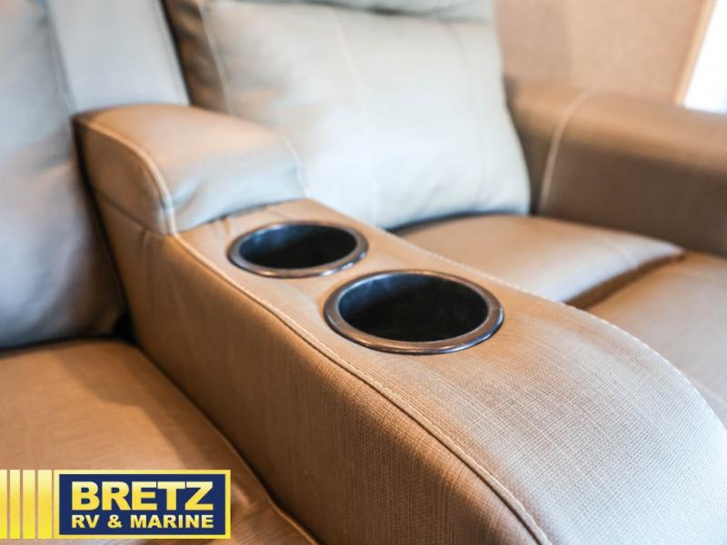 This Vision XL Class A gas motorhome has enough seating and sleeping spaces for a couple of the grandkids to ride along after their soccer tournament! You and your spouse will enjoy a good night's rest on the king bed inside the rear private bedroom, and your guests can sleep on the tri-fold sofa while another sleeps on the booth dinette once converted. You're going to feel right at home with the 50" LED TV on a lift, the fireplace, and the 21-cu. ft. residential refrigerator, and if you choose to add the optional washer and dryer combo, then you won't need to worry about getting your clothes dirty on the trip. The exterior entertainment center comes with outside speakers, an LED TV mounted on a swivel bracket, and a single-disc DVD/FM radio, plus the 23' electric awning with LED lights and the door awning will keep you protected rain or shine!