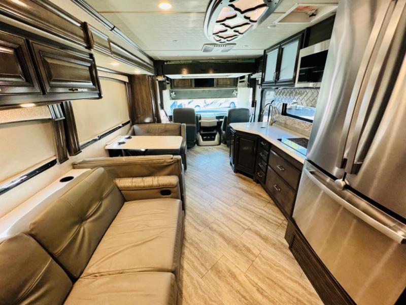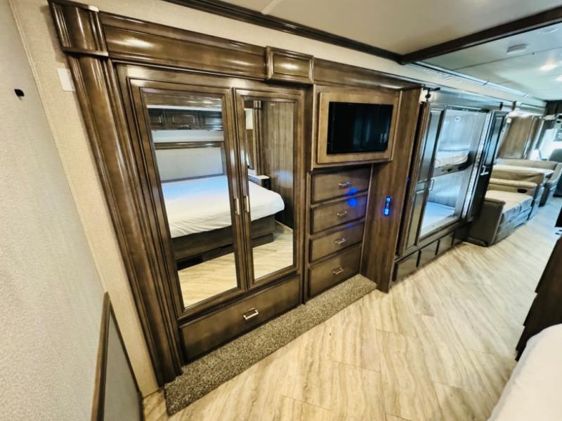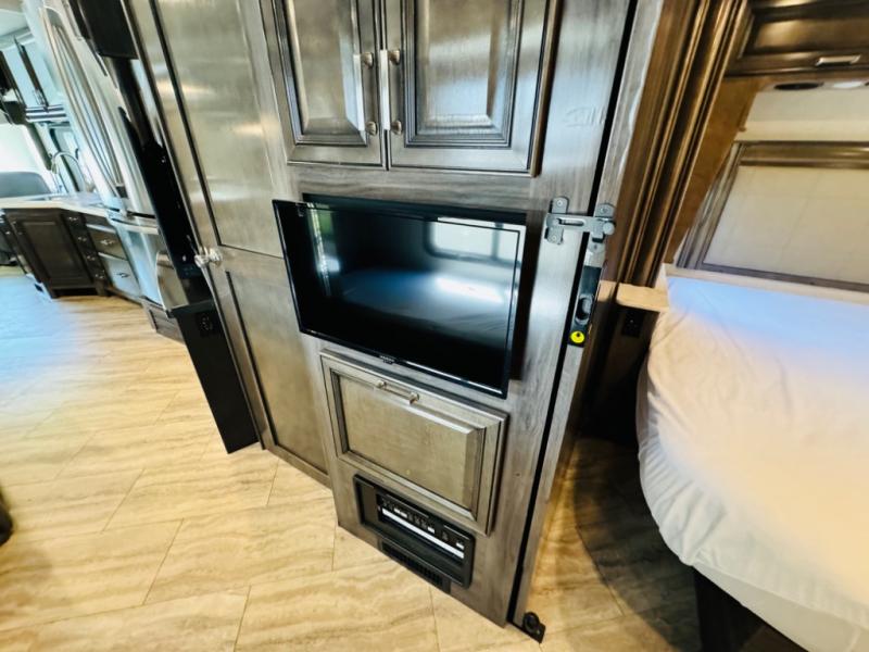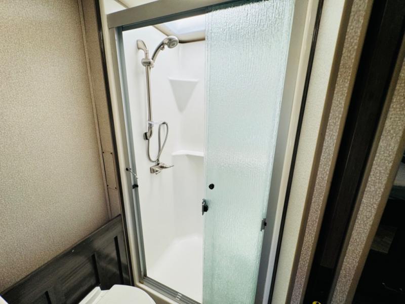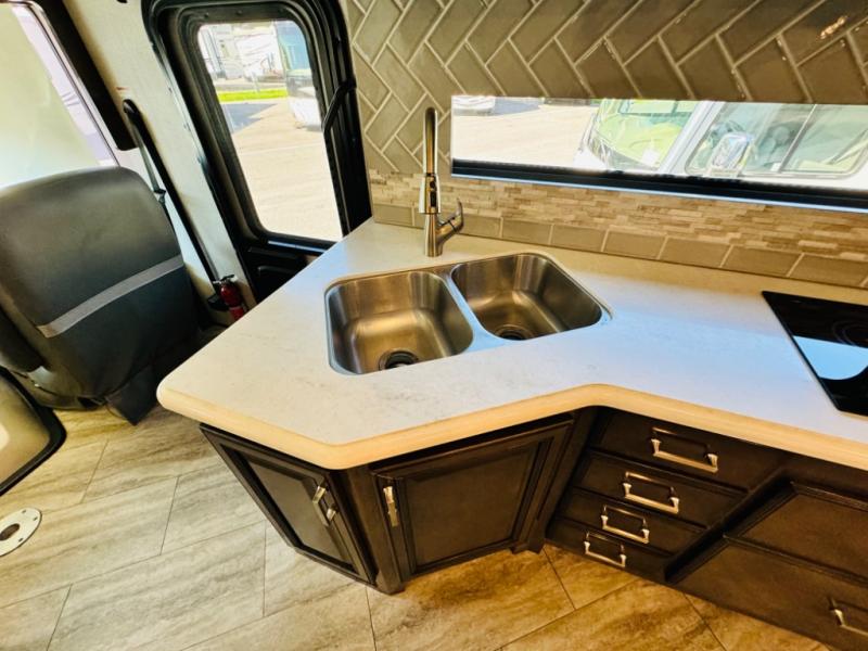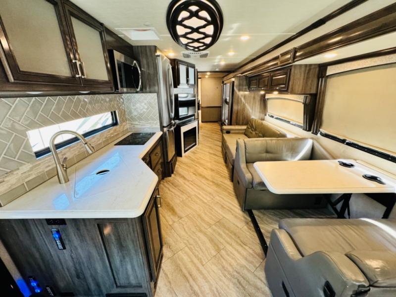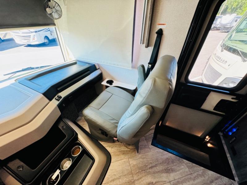 This motorhome is decked out in luxurious features for the whole family! From the two full bathrooms to the 26" x 74" bunk beds that can convert into a wardrobe and seating for the TV gaming center. Across from the bunks is a 24" LED TV with flip down storage and linen outside of one of the full bathrooms. You will feel right at home in the private bedroom with the Serenity Series king bed that has CPAP storage above it, a 24" LED TV above the dresser, and your very own private full bathroom with lots of counter space for you to get ready each morning. You can prepare your best home cooked meals with the two burner electric induction cooktop, and eat them at the 76" booth dinette and even the driver/passenger pedestal table. Wind down your nights by relaxing outside at the exterior entertainment center or indoors on the 70" sofa by the fireplace with the 40" LED TV to watch your favorite movie!