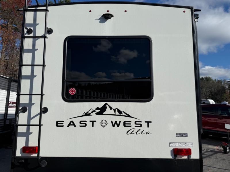 You can go as far as your eye can see with any one of these EAST TO WEST Alta lightweight travel trailers! New 2021 conveniences include a Morryde step with tool box storage, an under bed wardrobe to keep things tucked away, and residential stainless steel appliances with an oversized window package to look out at your beautiful scenery. Don't leave any of your outdoor gear behind, simply store it all in the drop frame pass-through storage with slam baggage doors and 110V power on both sides. The universal docking station not only has a 110V recept, a motion light, and battery disconnect, but also satellite/cable hook ups, a city water connection, and a hot and cold outdoor shower to rinse the mud off your feet before entering inside. Come choose your favorite model today!