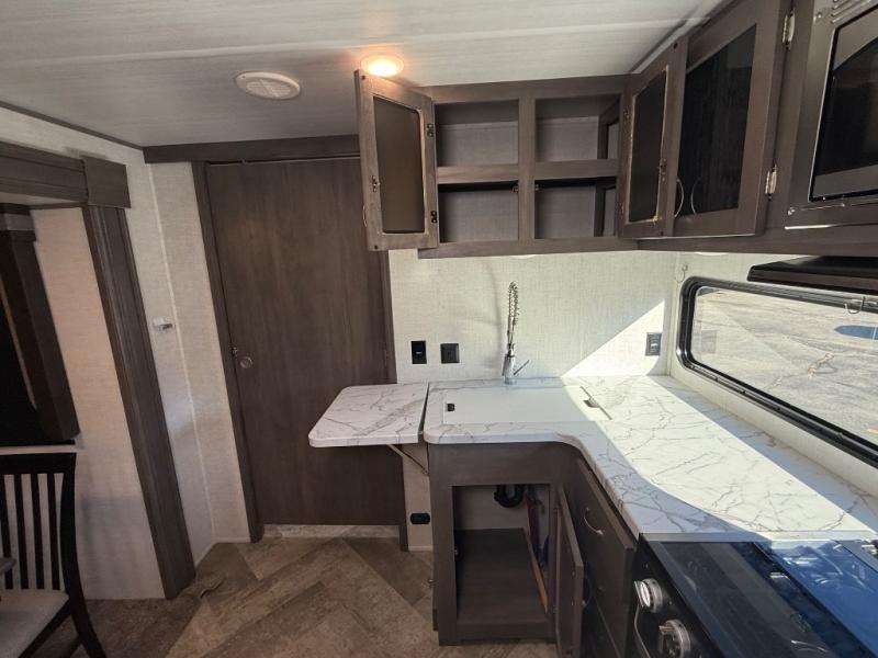 A 2021 Forest River RV Alta 2850KRL is the kind of travel trailer that makes every camping trip feel like a little bit of luxury mixed with a whole lot of adventure. It’s designed with a bright, modern interior that feels open and inviting, thanks to its large rear living layout. The panoramic windows let in tons of natural light, giving you beautiful views no matter where you’re parked. Comfortable theater seating, a spacious kitchen with plenty of counter space, and a private front bedroom create an environment that feels more like a stylish retreat than a camper. Whether you're relaxing after a long hike or hosting friends at the campsite, the Alta 2850KRL delivers comfort, style, and practicality in one well-built package.