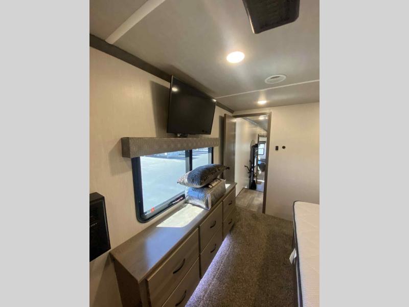 See where the road leads with any one of these Forest River Cedar Creek fifth wheels! They are constructed with the famous Cedar Creek all-aluminum superstructure on 16" centers, a "True" gelcoat exterior, and Silaprene® bonded sidewalls that are resilient, grow stronger with age, and also have an outstanding resistance to UV, heat, cold, moisture, oil/gas, and highway chemicals. The Dexter Performance and Safety Package will give you a peace of mind while driving down the road. You can also bring your furry friend with the animal leash latch, and enjoy your privacy with the Hehr frameless, tinted automotive-style windows. A few other convenient features you are sure to love are the Intervac central vacuum system with a front storage compartment port and interior automatic dustpan, the Congoleum® flooring (carpet mandatory in dining slide), and the USB plug-ins on each side of the king bed. Come choose the model that best suits you today!