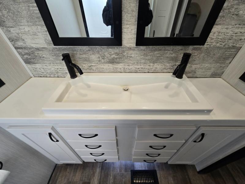 See where the road leads with any one of these Forest River Cedar Creek fifth wheels! They are constructed with the famous Cedar Creek all-aluminum superstructure on 16" centers, a "True" gelcoat exterior, and Silaprene® bonded sidewalls that are resilient, grow stronger with age, and also have an outstanding resistance to UV, heat, cold, moisture, oil/gas, and highway chemicals. The Dexter Performance and Safety Package will give you a peace of mind while driving down the road. You can also bring your furry friend with the animal leash latch, and enjoy your privacy with the Hehr frameless, tinted automotive-style windows. A few other convenient features you are sure to love are the Intervac central vacuum system with a front storage compartment port and interior automatic dustpan, the Congoleum® flooring (carpet mandatory in dining slide), and the USB plug-ins on each side of the king bed. Come choose the model that best suits you today!