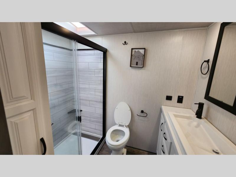 With any Cedar Creek Champagne Edition fifth wheel by Forest River you can extend your stay during any climate and where ever you decide to set up! Each is built with an all aluminum super structure, 100% aluminum framed windows and baggage doors, large surface 12V heating pads on all tanks, the Dexter Safety and Performance package, plus the Standard Level-Up 6-point hydraulic leveling system. The fifth wheels are powered by Firefly Integrations with advanced electrical automation, and includes the King WiFi router/range extender, the Truma AquaGo instant water heater for constant, endless supply of hot water, and a heated front storage compartment. Inside you will find luxury and convenience throughout with features like Ashley Grey high sheen maple cabinet doors and drawers with hidden hinges, the Champagne LED lighting package, Intra-Vac central vacuum system with front storage port, two Whisper Quiet, ducted air conditioners with dual zone control and cold air returns, and residential appliances to mention a few.