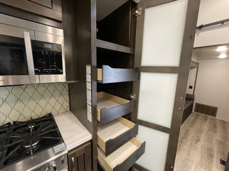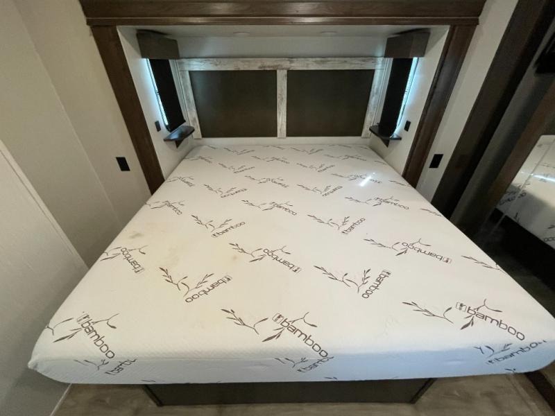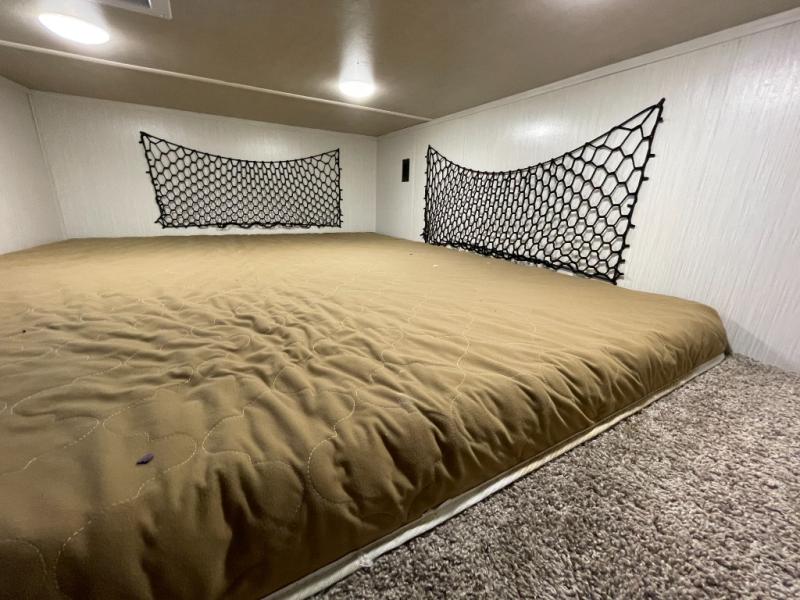 With two private bedrooms plus a loft your whole family will enjoy their next camping trip in style and comfort with this four slide out Cedar Creek Silverback fifth wheel 37MBH by Forest River. Come kick back and relax in the rear living area. You can easily watch TV on the 50” TV, plus below there is an electric fireplace. Fixing meals for your family is a breeze in this kitchen. You will find an island with a double sink and plenty of amenities such as a 20 cu. ft. stainless steel electric refrigerator, a spacious pantry, a 24" gas range, and a 30” over-the-range microwave. Just off of the kitchen is the second bedroom where you can easily sleep two people. In the hallway at the top of the stairs there is another set of steps which leads to the loft which will be a fun hang out spot for your kids. When mom and dad are ready to turn in for the night come do so on the king bed slide out in the front private bedroom. There is also plenty of storage space with a dresser and a large front wardrobe, plus so much more!