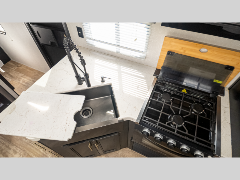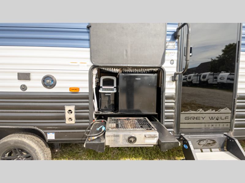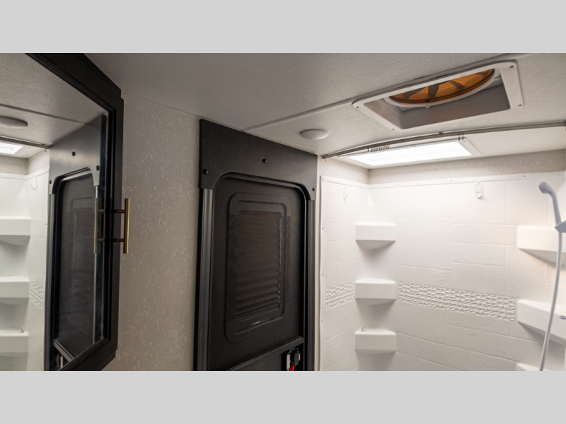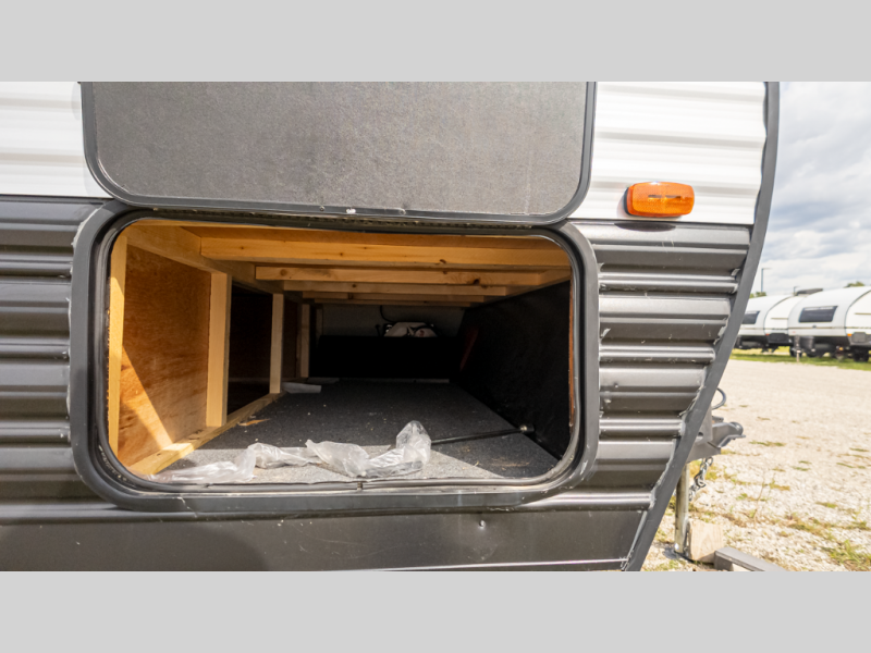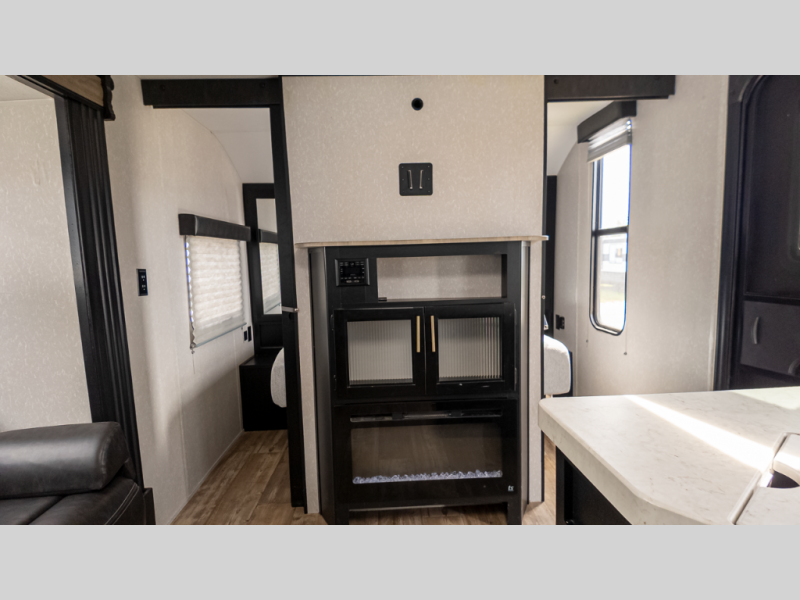 - Camping Features: 15,000 BTU A/C, 6-gal water heater, 15' power awning, double doors, residential-style storage