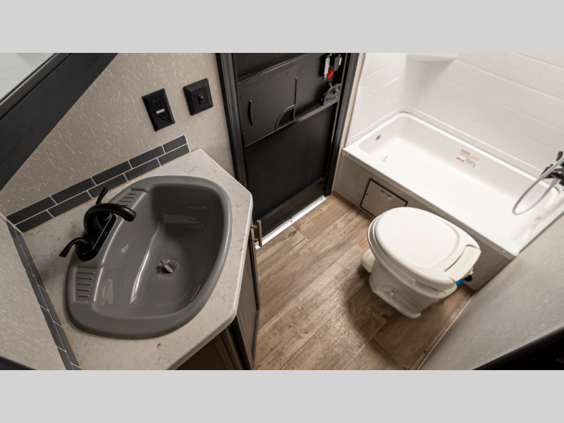 - Utilities: Fresh/Gray/Black 40/38/28 gal; 15,000 BTU A/C; 6 gal water heater; 15' awning