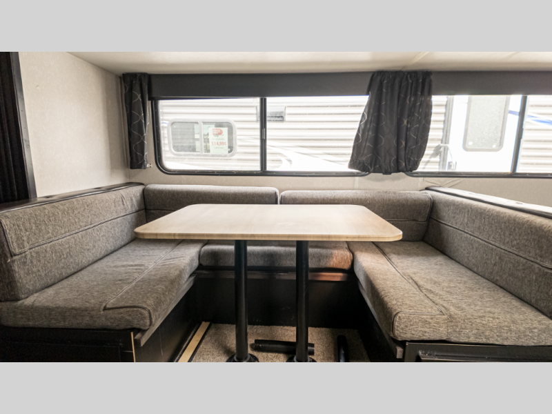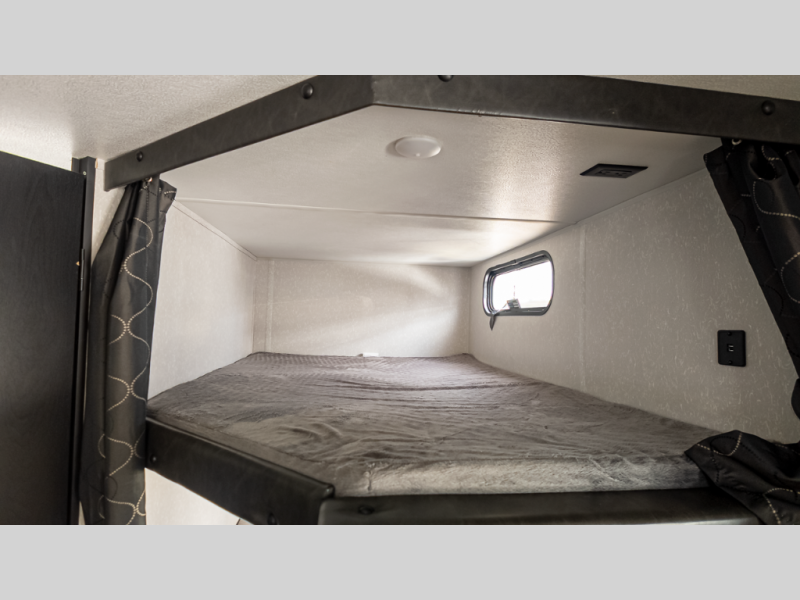 - Sleep & Layout: Queen bed, double bunks, U-dinette slide; 1 slide-out; dual entries