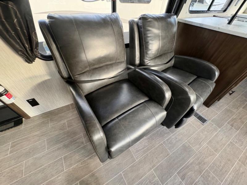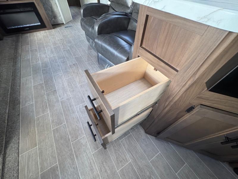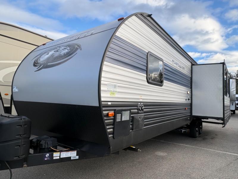 Answer the beckoning call with one of these Forest River Cherokee travel trailers or toy haulers! With a Power Gear™ frame technology, a premium wheel package, an armored underbelly tank enclosure, and seamless roofing membrane with heat reflectivity, you will enjoy a unit that will last through any adventure. The Chef Select black stainless steel kitchen suite package gives you the ability to prepare delicious home cooked meals even in the woods. The supersized, 15,000 BTU central air conditioning unit has a quick cool air dump feature to keep you cool even on the hottest summer days. You can also rinse off your feet before entering the unit with the outside shower with hot and cold water. Come take a look at all the other features!