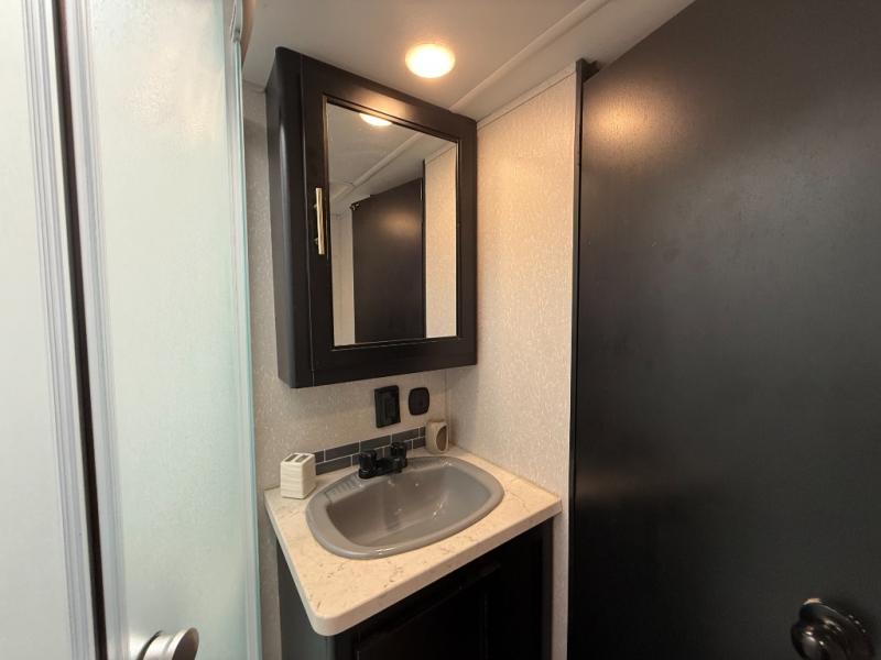 Answer the beckoning call with one of these Forest River Cherokee travel trailers or toy haulers! With a Power Gear™ frame technology, a premium wheel package, an armored underbelly tank enclosure, and seamless roofing membrane with heat reflectivity, you will enjoy a unit that will last through any adventure. The Chef Select black stainless steel kitchen suite package gives you the ability to prepare delicious home cooked meals even in the woods. The supersized, 15,000 BTU central air conditioning unit has a quick cool air dump feature to keep you cool even on the hottest summer days. You can also rinse off your feet before entering the unit with the outside shower with hot and cold water. Come take a look at all the other features!