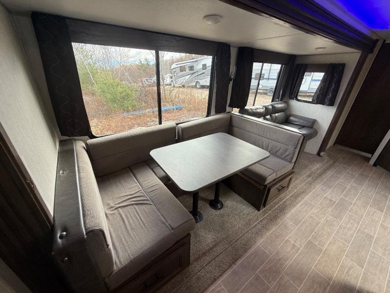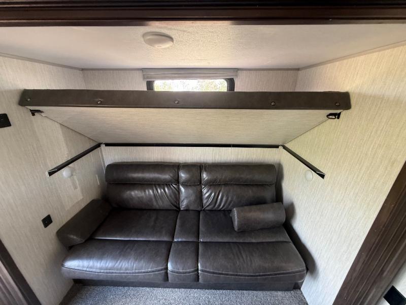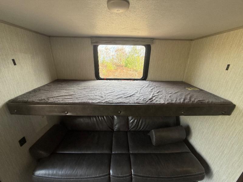 This is the ultimate family-friendly travel trailer! You will love all of the space inside this Cherokee travel trailer. From the three slides to the rear private bunkhouse for your kids, there is room for everyone and everything! The kitchen features a large island with a sink, plus a U-shaped dinette for you to enjoy your meals at. Throughout this model there are overhead cabinets, optional 40" storage drawers under the dinette, and exterior storage compartments. There is even a master suite up front so that you can take a moment to enjoy peace and quiet whenever you need.