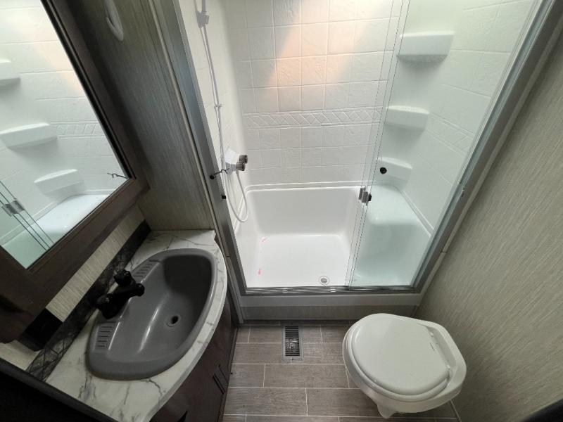 Answer the beckoning call with one of these Forest River Cherokee travel trailers or toy haulers! With a Power Gear™ frame technology, a premium wheel package, an armored underbelly tank enclosure, and seamless roofing membrane with heat reflectivity, you will enjoy a unit that will last through any adventure. The Chef Select black stainless steel kitchen suite package gives you the ability to prepare delicious home cooked meals even in the woods. The supersized, 15,000 BTU central air conditioning unit has a quick cool air dump feature to keep you cool even on the hottest summer days. You can also rinse off your feet before entering the unit with the outside shower with hot and cold water. Come take a look at all the other features!