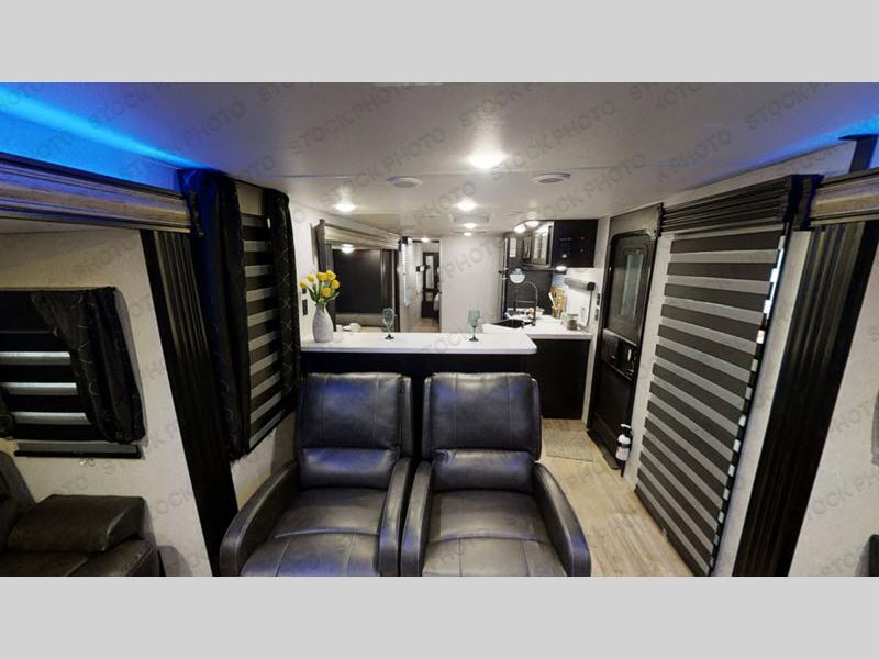 You will certainly want to plan more trips once you have this Cherokee travel trailer sitting in your driveway! With a private bedroom up front and a separate living room in the back, this trailer feels just like home. There is plenty of seating for everyone in the living room with the opposing sofa slides and the two lounge chairs, and the entertainment center will be easily viewed by all. If the weather is too nice to stay indoors, then you can all head outside and have a barbecue at the outdoor kitchen.