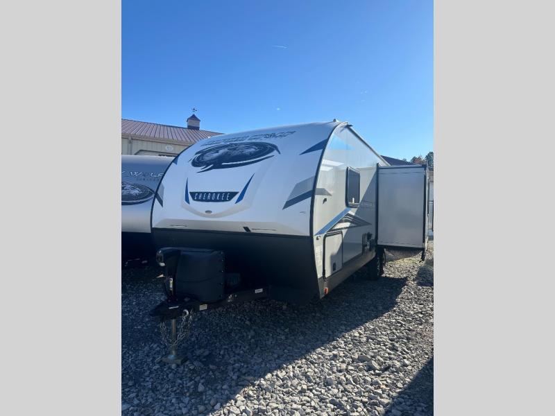 You will be one happy camper with any one of these Forest River Cherokee Alpha Wolf travel trailers! You will not only find top shelf amenities, but also a tougher, lighter, and better insulated shell with the engineered wood SuperTruss roof structure with 3/8" fully walkable decking. The LED interior and exterior lighting packages make it possible to see whether day or night, and the unobstructed pass-through storage area lets you easily access your camping gear. A few other features you will love having are the aluminum rims with tire pressure monitors, the Alpha bath fixtures, the power tongue jack, and the super-plush Evergreen mattress with a deluxe bedding package. You won't be disappointed with any one of these travel trailers!