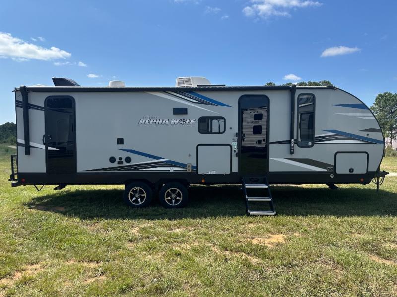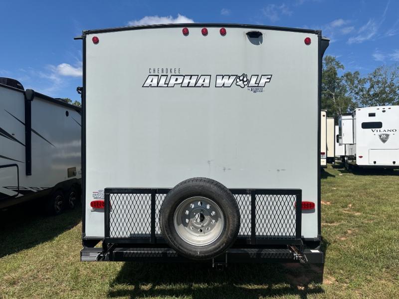 You will be one happy camper with any one of these Forest River Cherokee Alpha Wolf travel trailers! You will not only find top shelf amenities, but also a tougher, lighter, and better insulated shell with the engineered wood SuperTruss roof structure with 3/8" fully walkable decking. The LED interior and exterior lighting packages make it possible to see whether day or night, and the unobstructed pass-through storage area lets you easily access your camping gear. A few other features you will love having are the aluminum rims with tire pressure monitors, the Alpha bath fixtures, the power tongue jack, and the super-plush Evergreen mattress with a deluxe bedding package. You won't be disappointed with any one of these travel trailers!