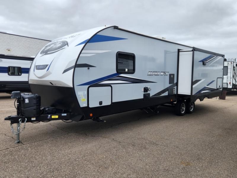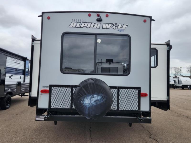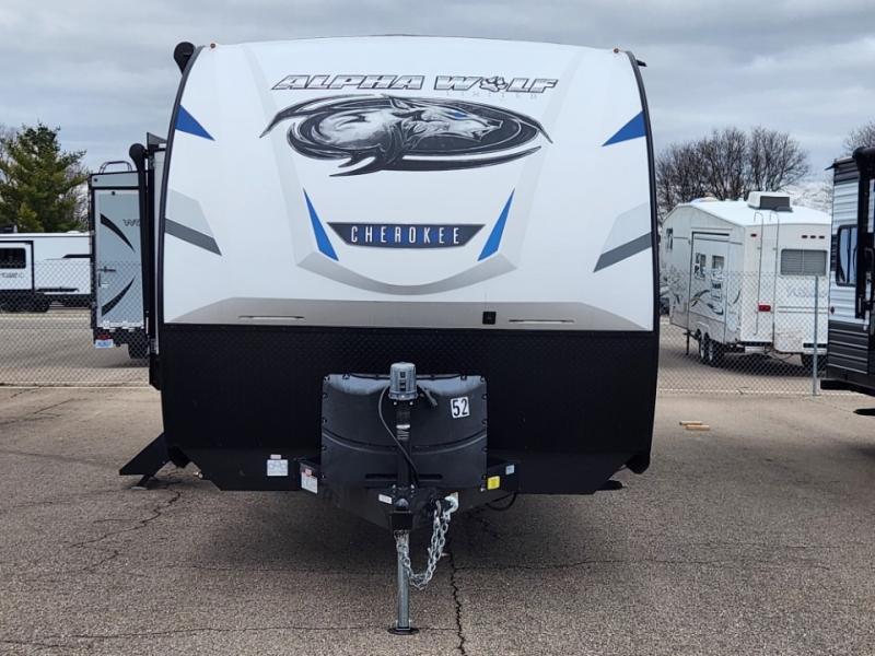 You will be one happy camper with any one of these Forest River Cherokee Alpha Wolf travel trailers! You will not only find top shelf amenities, but also a tougher, lighter, and better insulated shell with the engineered wood SuperTruss roof structure with 3/8" fully walkable decking. The LED interior and exterior lighting packages make it possible to see whether day or night, and the unobstructed pass-through storage area lets you easily access your camping gear. A few other features you will love having are the aluminum rims with tire pressure monitors, the Alpha bath fixtures, the power tongue jack, and the super-plush Evergreen mattress with a deluxe bedding package. You won't be disappointed with any one of these travel trailers!