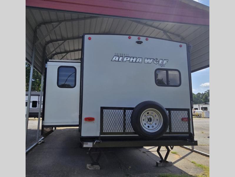 You will be one happy camper with any one of these Forest River Cherokee Alpha Wolf travel trailers! You will not only find top shelf amenities, but also a tougher, lighter, and better insulated shell with the engineered wood SuperTruss roof structure with 3/8" fully walkable decking. The LED interior and exterior lighting packages make it possible to see whether day or night, and the unobstructed pass-through storage area lets you easily access your camping gear. A few other features you will love having are the aluminum rims with tire pressure monitors, the Alpha bath fixtures, the power tongue jack, and the super-plush Evergreen mattress with a deluxe bedding package. You won't be disappointed with any one of these travel trailers!