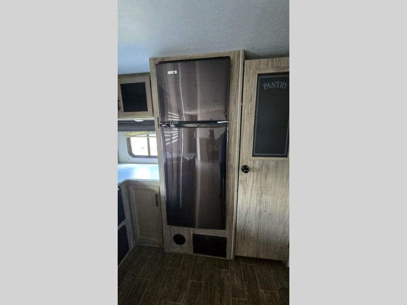You and your spouse will love all of the interior storage throughout and the cross conversational seating area with a great view of your scenery in this travel trailer! The jackknife sofa allows you to relax in true comfort by the electric fireplace. The rear kitchen makes it easy for you to move around and prepare a delicious meal, plus the walk-in pantry is big enough to hold all of your favorite snacks. If you wish to breathe in some fresh air while cooking then you can head to the deluxe outside kitchen. The dual entry bathroom is easy for everyone to access especially those sleeping in the front private bedroom on the comfortable queen bed with nightstands and shirt closets on either side of it. You can also store all of your camping gear in the exterior full pass-through storage area!