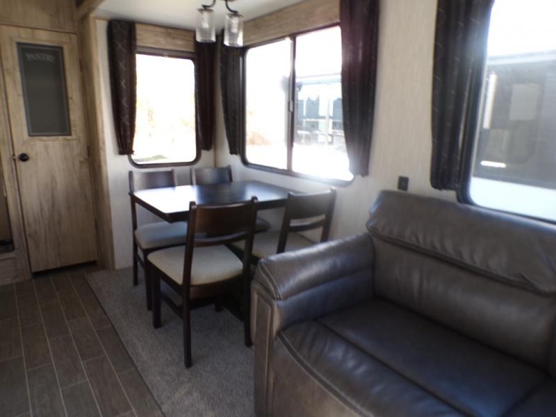 It's time to join the pack and see what you've been missing! With the Forest River Cherokee Arctic Wolf fifth wheel, you can finally enjoy true value and home-like amenities. Each portion of the Arctic Wolf has been designed to make you feel comfortable, like the bathroom that has a Nautilus-style shower with retractable splash-proof door, a skylight, an oversized sink, countertop, base cabinet, and medicine cabinet, a motion-sensing nightlight, and a barn-style door. Make each of your getaways a party with the dual-zone Bluetooth stereo optimized for USB flash drives, iPods, and other MP3 players, and use the leash latch pet safety technology to keep your puppy from wandering off. The outside shower with hot and cold water can be used for hosing down your outdoor equipment before storing it away again, and there are motion-sensor lights in the pass-through storage so that you can easily see when the campsite is dark.