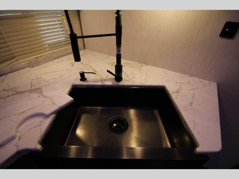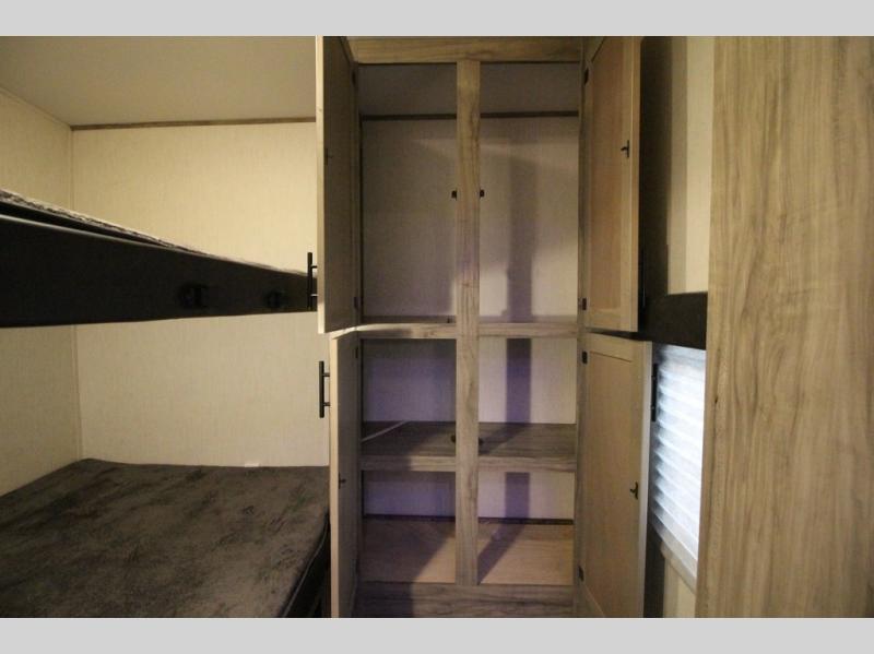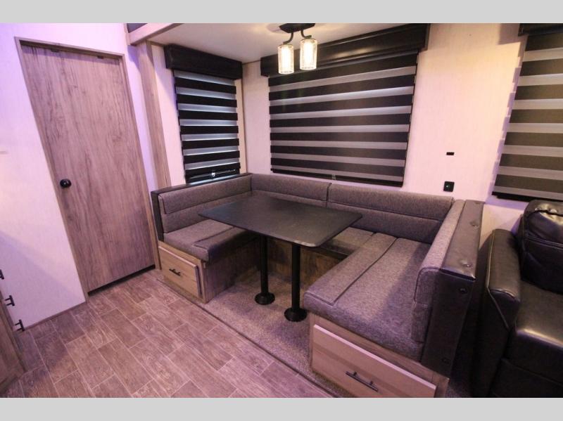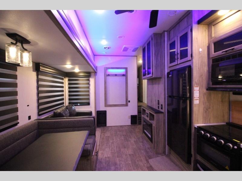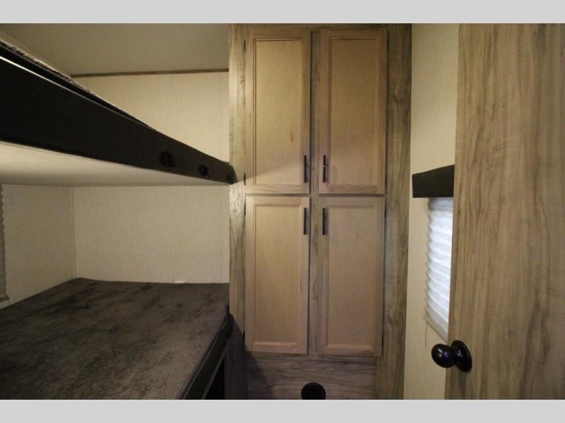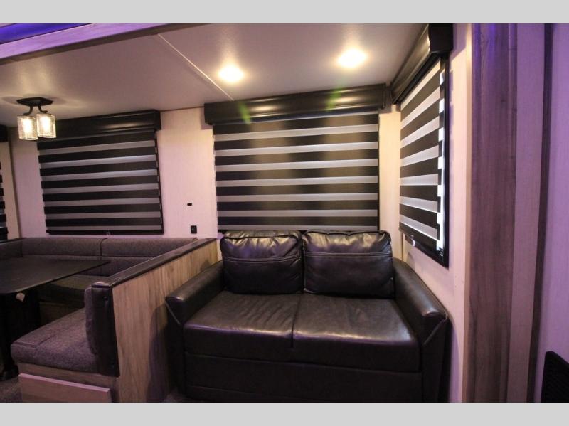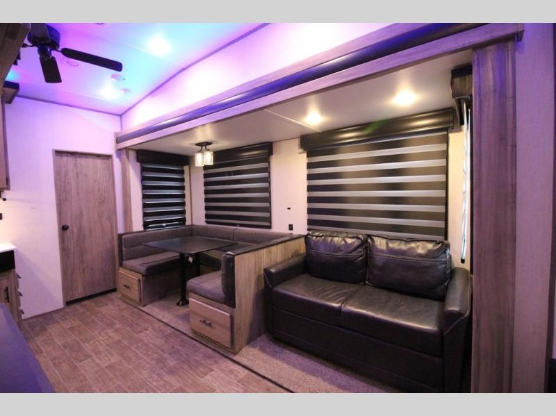 Your kiddos are going to love camping in this Arctic Wolf fifth wheel! They can have their own privacy with the rear bunkhouse featuring double-size bunks with storage below the lower bunk and a wardrobe for their clothes. After you have whipped up your meal either indoors or at the deluxe outside kitchen, you can head to the super U-shaped dinette and enjoy it there comfortably. You can then play some games afterwards, plus the dinette can transform into extra sleeping space if needed. When you're ready to wind down your night, you may decide to relax on the tri-fold sofa and enjoy the electric fireplace while you watch your favorite show on the optional TV, or sit outside under the 20' awning.