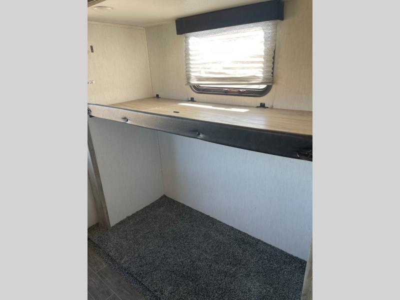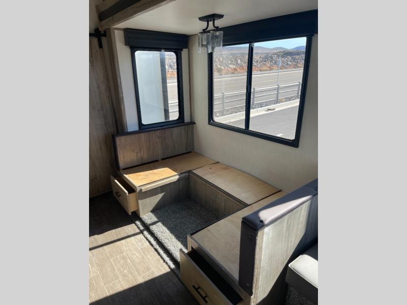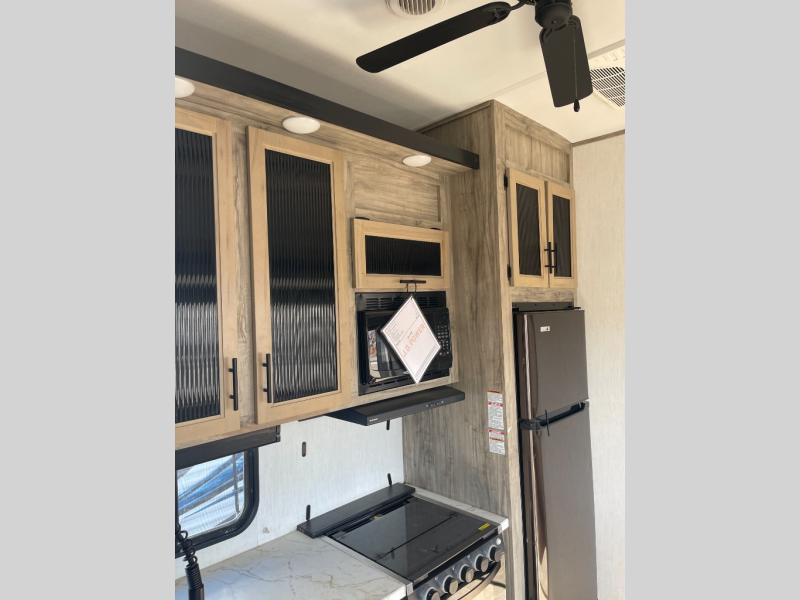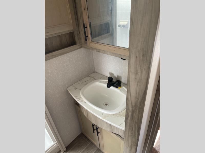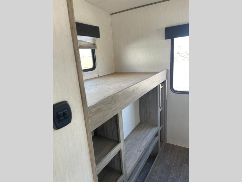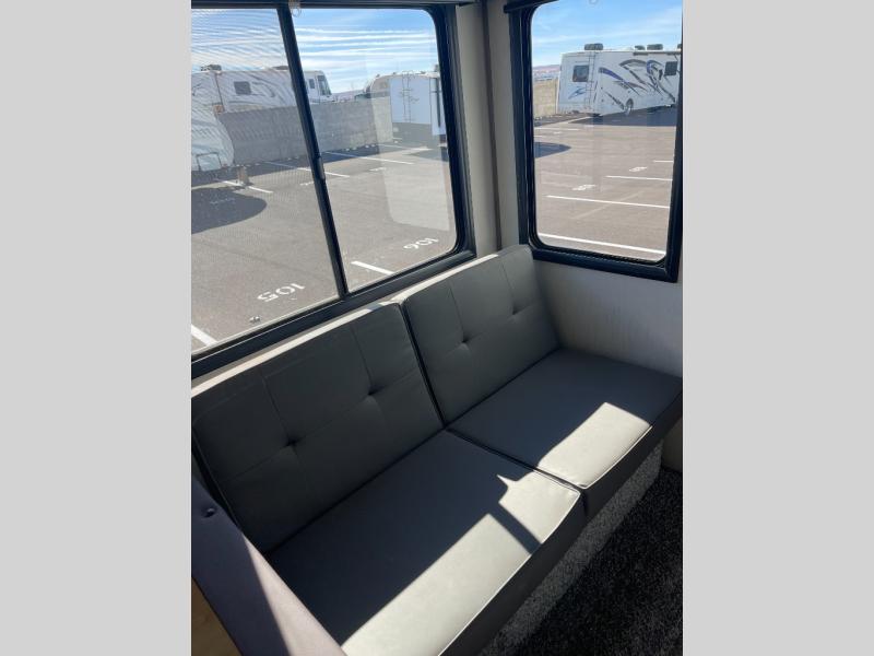 Choosing to camp in this Arctic Wolf fifth wheel is the best choice you can make! With a full and half bathroom, everyone can get cleaned up in the mornings easily and head outdoors for breakfast that has been prepared at the outside kitchen. The rear private bunkhouse with a jackknife sofa, a flip-up bunk, plus a second bunk is sure to be a hit with the kids. You and your spouse will enjoy a good night's rest each night in the front private bedroom on your residential queen-size bed. After a fun day in the sun, head indoors and relax on the tri-fold sofa while you enjoy a fire going in the fireplace or start up a card game at the super U-shaped dinette which can be transformed into extra sleeping space if needed!