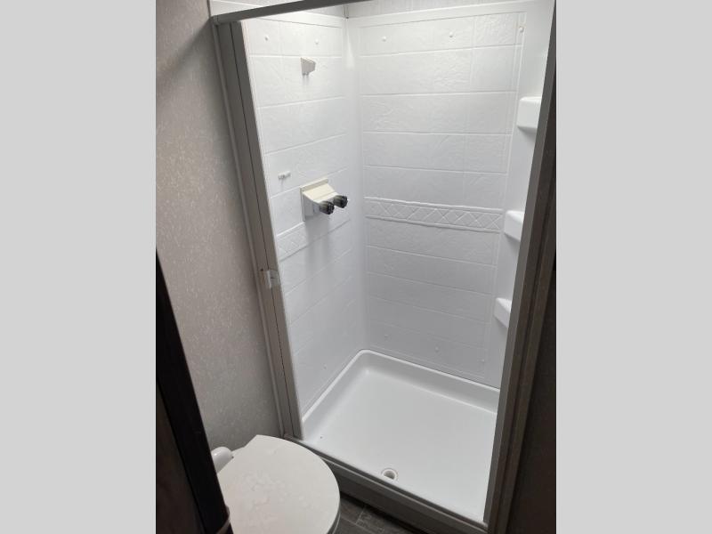 It's time to join the pack and see what you've been missing! With the Forest River Cherokee Arctic Wolf fifth wheel, you can finally enjoy true value and home-like amenities. Each portion of the Arctic Wolf has been designed to make you feel comfortable, like the bathroom that has a Nautilus-style shower with retractable splash-proof door, a skylight, an oversized sink, countertop, base cabinet, and medicine cabinet, a motion-sensing nightlight, and a barn-style door. Make each of your getaways a party with the dual-zone Bluetooth stereo optimized for USB flash drives, iPods, and other MP3 players, and use the leash latch pet safety technology to keep your puppy from wandering off. The outside shower with hot and cold water can be used for hosing down your outdoor equipment before storing it away again, and there are motion-sensor lights in the pass-through storage so that you can easily see when the campsite is dark. DLR #886B