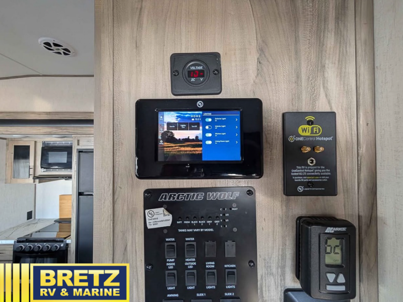 Find out what you've been missing with any one of these Forest River Cherokee Arctic Wolf Suite fifth wheels! Each model is constructed with 5/8" tongue and groove plywood floor decking, 1x engineered wood "SuperTruss" roof structure, and a "ToughBend" rigid skirt metal design for a durable fifth wheel made to last. The large exterior folding entry assist grab handle at all entries makes entering easier than ever, and the motion sensor lights in the pass-through storage will allow you to unpack quickly. These fifth wheels include a dual zone Bluetooth stereo optimized for USB flash, drives, iPODs, and other MP3 players so you can listen to your favorite tunes, and there is outside TV prep in the pass-through if you enjoy watching movies outdoors.