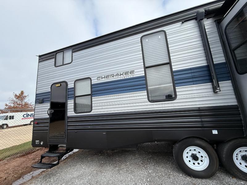 With any Cherokee destination trailer by Forest River you can experience the comforts of home and conveniences you are accustom to at your favorite location be it at the lake, ranch or farm. Each is built on a solid foundation with three to four slide outs depending on the destination trailer you choose, and includes many features you can't live without. And there are features such as an upgraded kitchen appliance package, a fireplace, a residential kitchen sink, a large exterior folding assist grab handle and a sky light over the tub depending on the optional features within the packages you choose. Stop dreaming and start living those dreams in a Cherokee destination trailer!