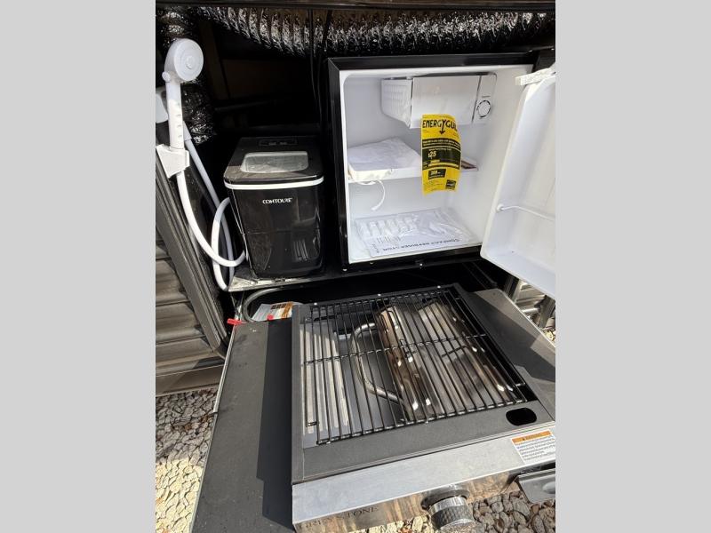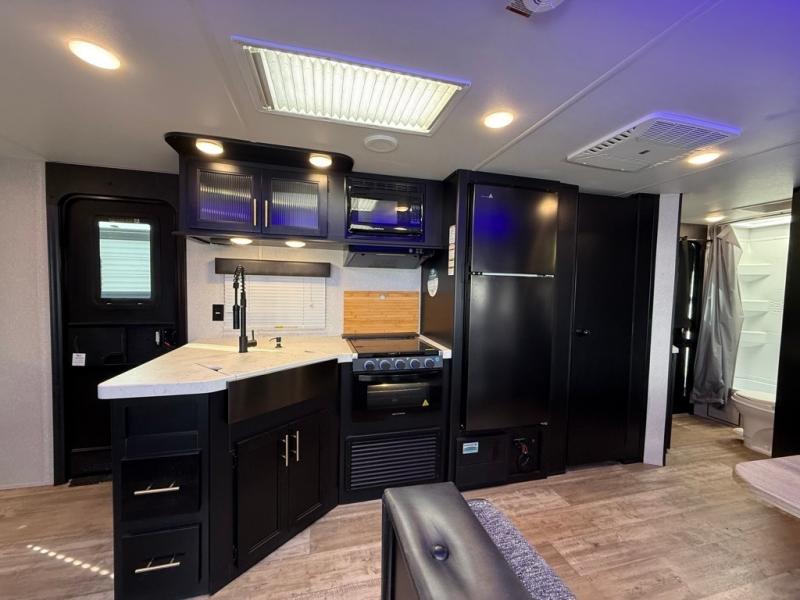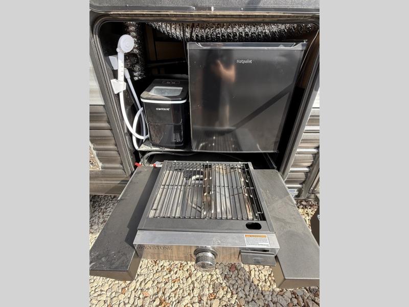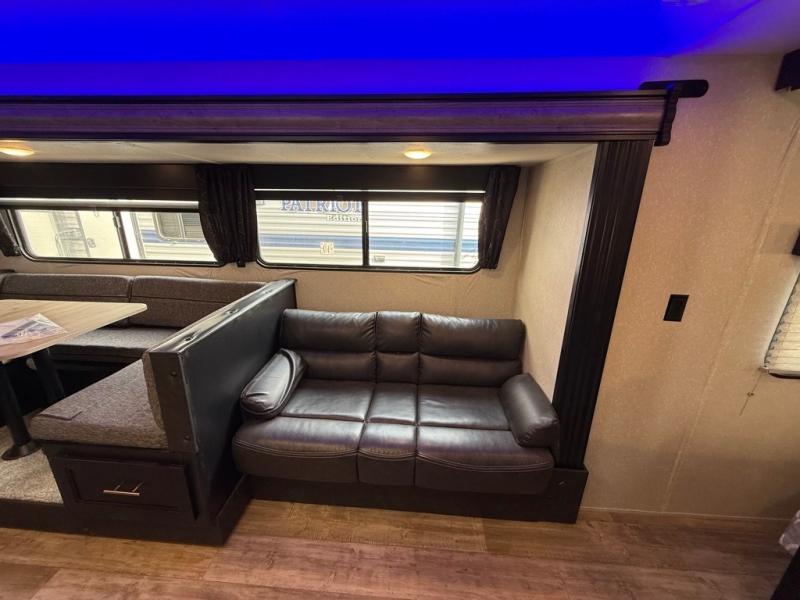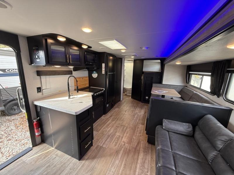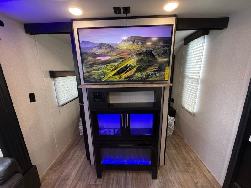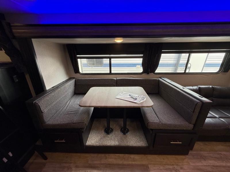 2 COLD A/C UNITS. FACTORY SOLAR, 30AMP POWER. OUTDOOR STORAGE. OUTDOOR KITCHEN, SOLID STEP ENTRY. DUAL AWNINGS WITH LED LIGHTS. LUXURY FEEL THROUGHOUT!! ONLY 6507 UVW.