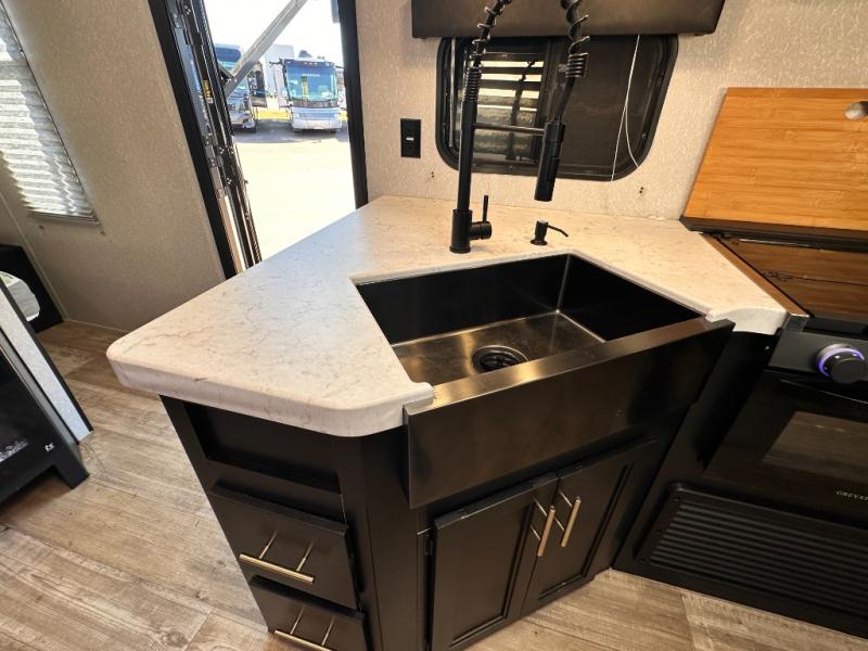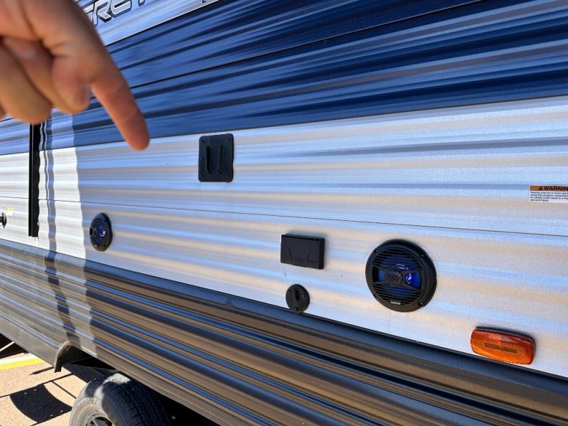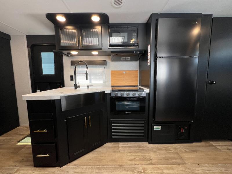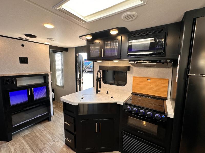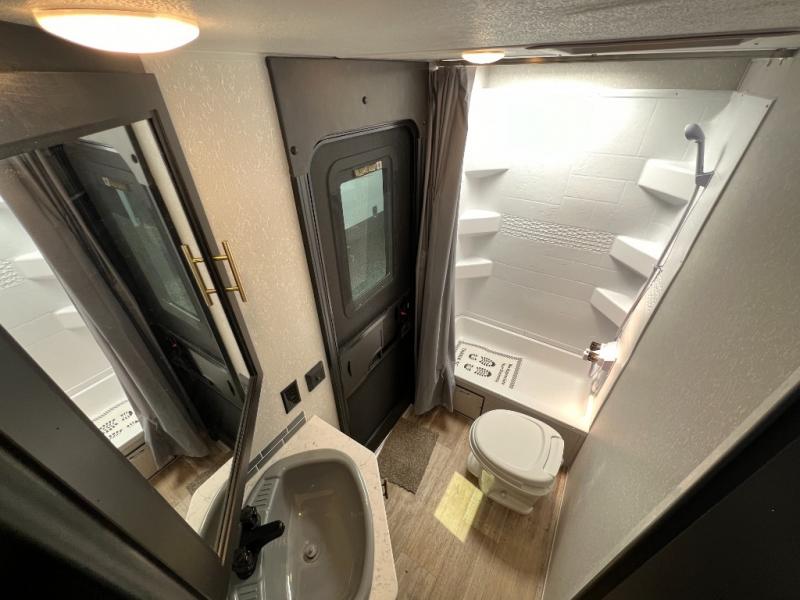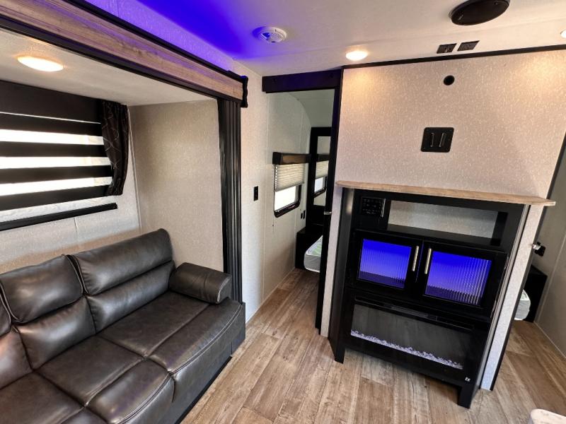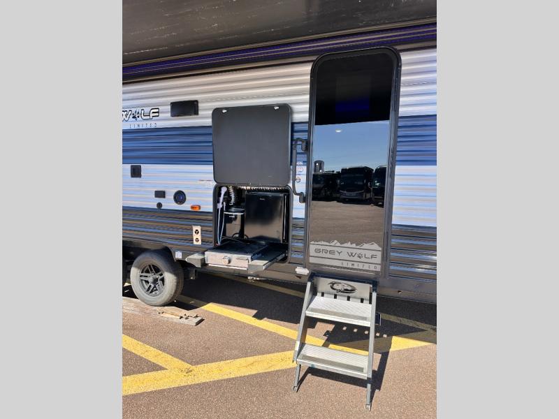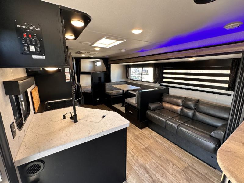 Whether it's a journey that will take you to new locations or a tried-and-true getaway to that favorite and memorable destination, the Forest River Cherokee Grey Wolf travel trailers and toy haulers are going to make the trip worth it every single time! You can travel in confidence with the premium wheel package, seamless roofing membrane with heat reflectivity, Power Gear frame technology with space-saver rail design, and Cherokee back-up camera system. The Cherokee Grey Wolf's interior is highly attractive with its stainless steel kitchen suite package, premium bedding ensemble and comforter, and 8" ceiling-mounted subwoofer with accent lighting. You will also find a black waste tank flush-out kit, an outside shower with hot and cold water, an armored underbelly tank enclosure, a power tongue jack, and an RV grill quick connect.