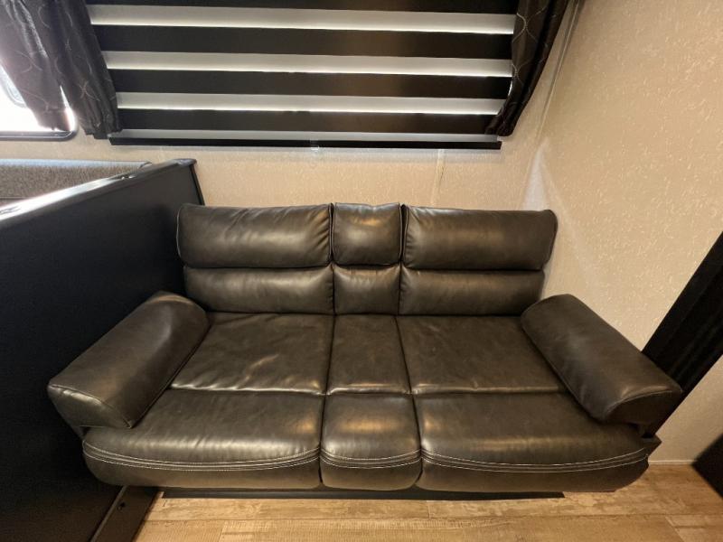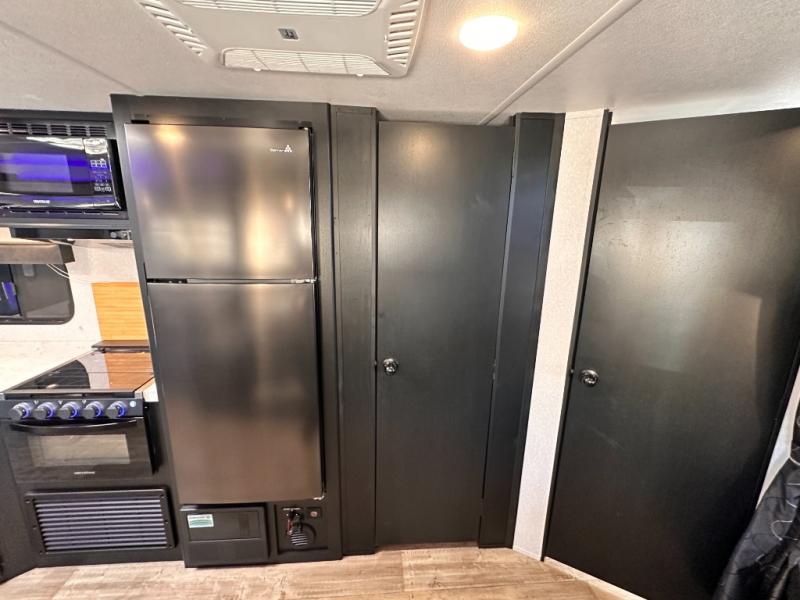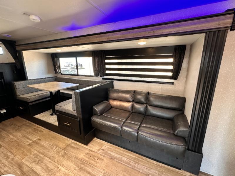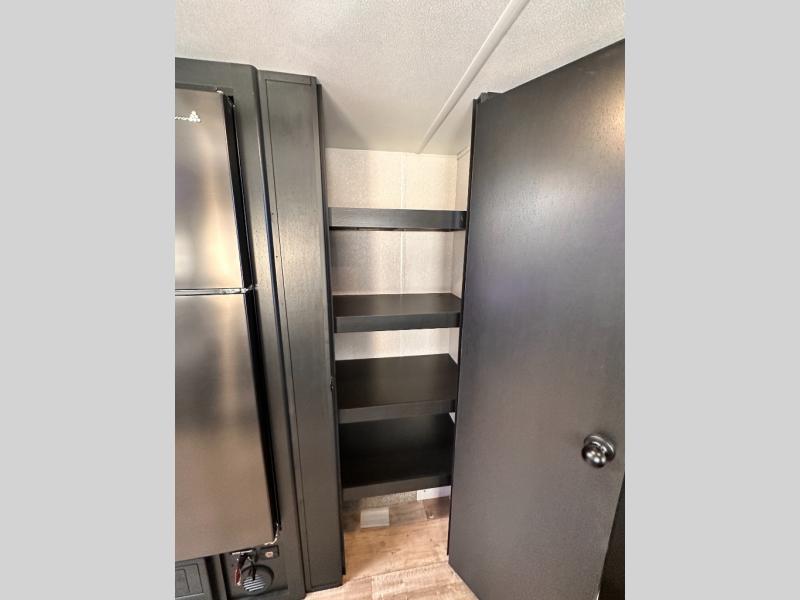 Come on inside this Cherokee Grey Wolf travel trailer and experience the convenience of a smooth flow of traffic in and out with two entry doors. The rear door leads into a full bath which is great for accessibility when outside and when you need to use the bathroom. Once inside, you will notice the large U-shaped dinette and the sofa which sit on the slide and create a spacious footprint for moving about, as well as great places to play games and socialize with your friends and family. A walk-in pantry provides plenty of storage allowing you to stock up on your favorite snacks and dry goods for your family adventure. At night, there is sleeping space for everyone between the double-size bunks and the queen-size bed, plus the furniture.