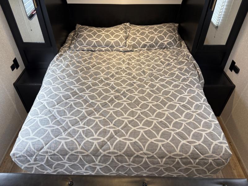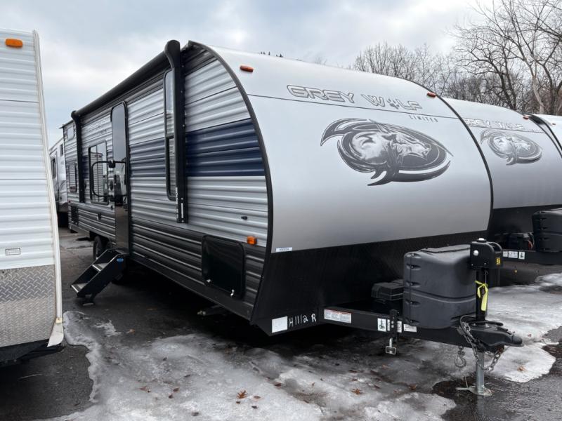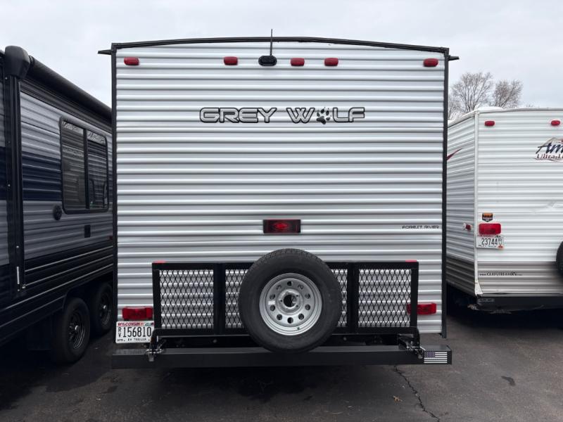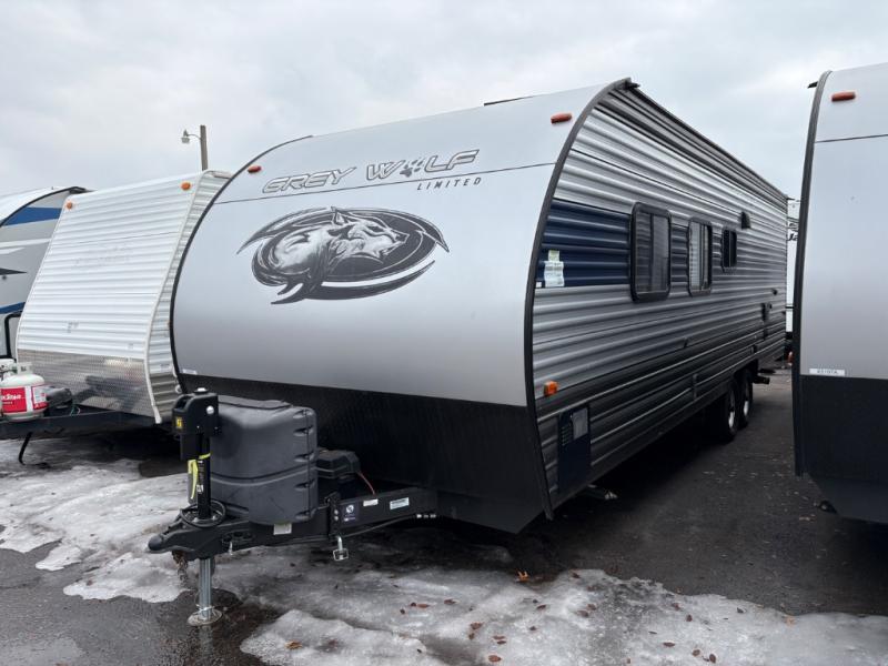 Whether it's a journey that will take you to new locations or a tried-and-true getaway to that favorite and memorable destination, the Forest River Cherokee Grey Wolf travel trailers and toy haulers are going to make the trip worth it every single time! You can travel in confidence with the premium wheel package, seamless roofing membrane with heat reflectivity, Power Gear frame technology with space-saver rail design, and Cherokee back-up camera system. The Cherokee Grey Wolf's interior is highly attractive with its stainless steel kitchen suite package, premium bedding ensemble and comforter, and 8" ceiling-mounted subwoofer with accent lighting. You will also find a black waste tank flush-out kit, an outside shower with hot and cold water, an armored underbelly tank enclosure, a power tongue jack, and an RV grill quick connect.