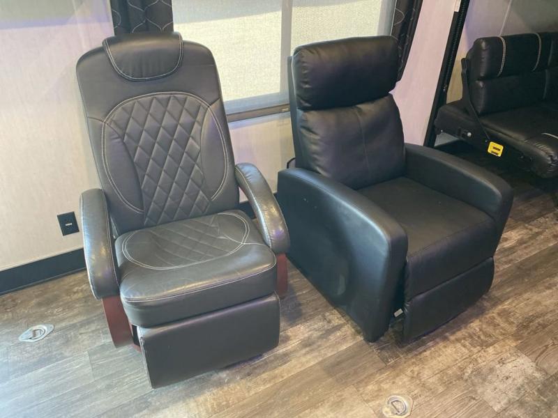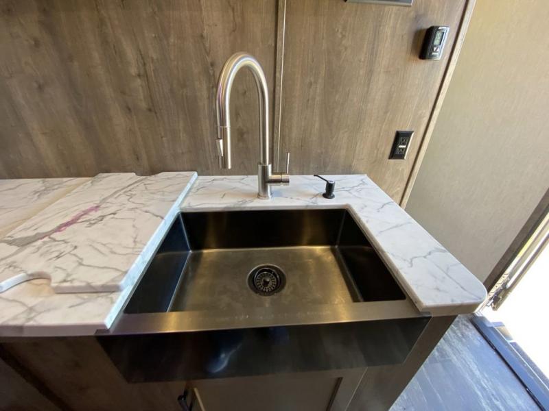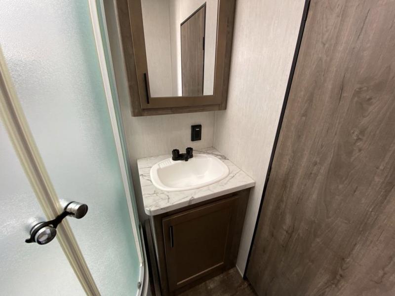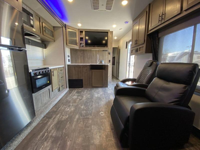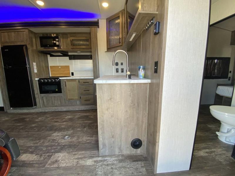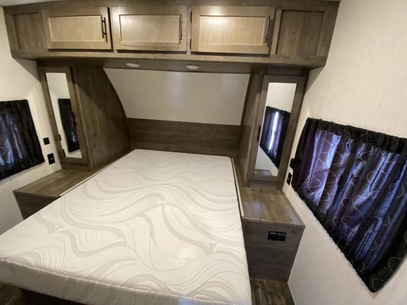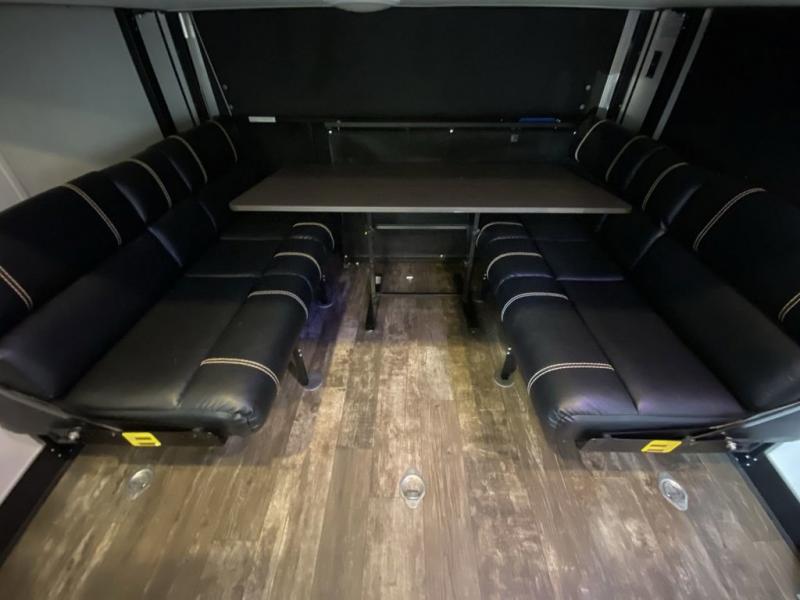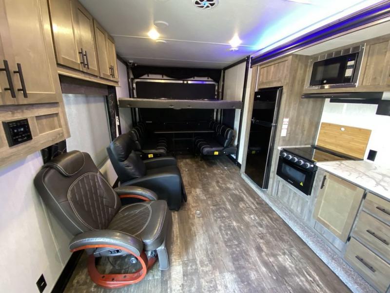 The versatile Cherokee Wolf Pack toy haulers are ready for all your excursions! Each model includes a true high gloss gel coat, a 102" wide body design, and a forced air heated underbelly and enclosed holding tanks so you can camp year around. You will enjoy hassle-free features such as, the in cab tire pressure monitor system, the Happijac bed lift system, and the 100 gallon fresh water capacity. Each model includes a shower skylight, LED interior/exterior lights, Zebra shades in the living area, and a black stainless steel farm sink for that added touch-of-home. The fifth wheels include stabilizer jacks, a second 15K A/C unit in the bedroom, and 50 Amp service. You will appreciate 30 Amp service in the travel trailers, a power tongue jack, and ramp door cables. These toy haulers also include USB charging stations to keep all your gadgets charged and ready to go, premium Teddy Bear bunk mats for comfortability, and a reverse activated light and backup camera for easy loading and unloading!
